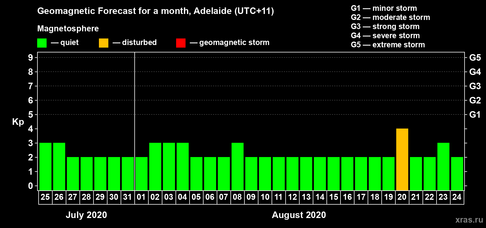Geomagnetic storm forecast in Adelaide for Jul 25, 2020