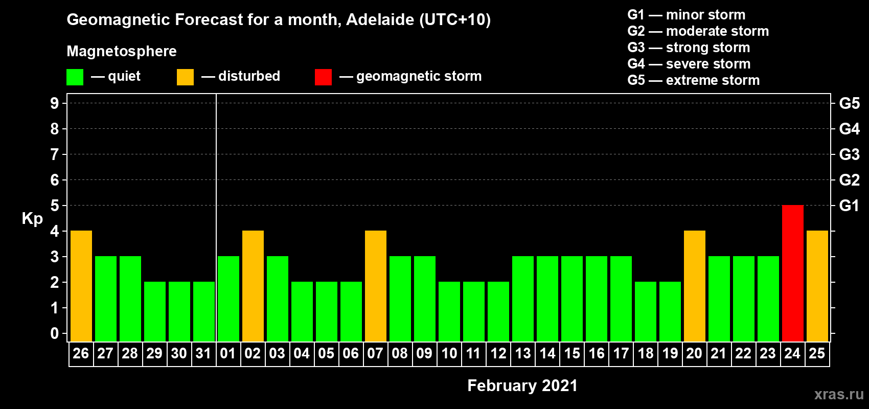 Geomagnetic storm forecast in Adelaide for Jan 26, 2021