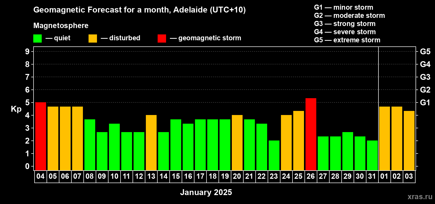 Geomagnetic storm forecast in Adelaide for Jan 04, 2025