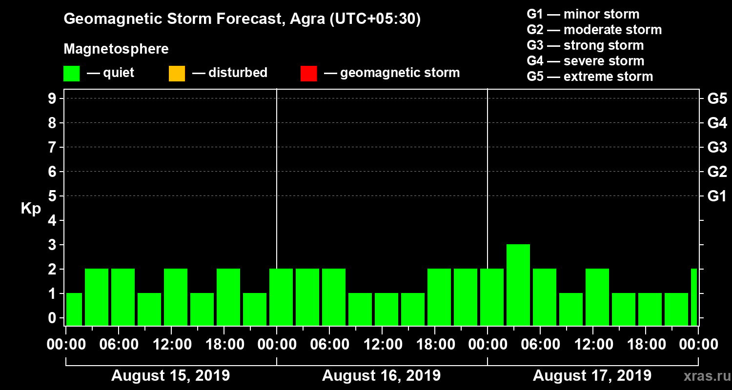 Geomagnetic activity forecast in Agra — Aug 15, 2019