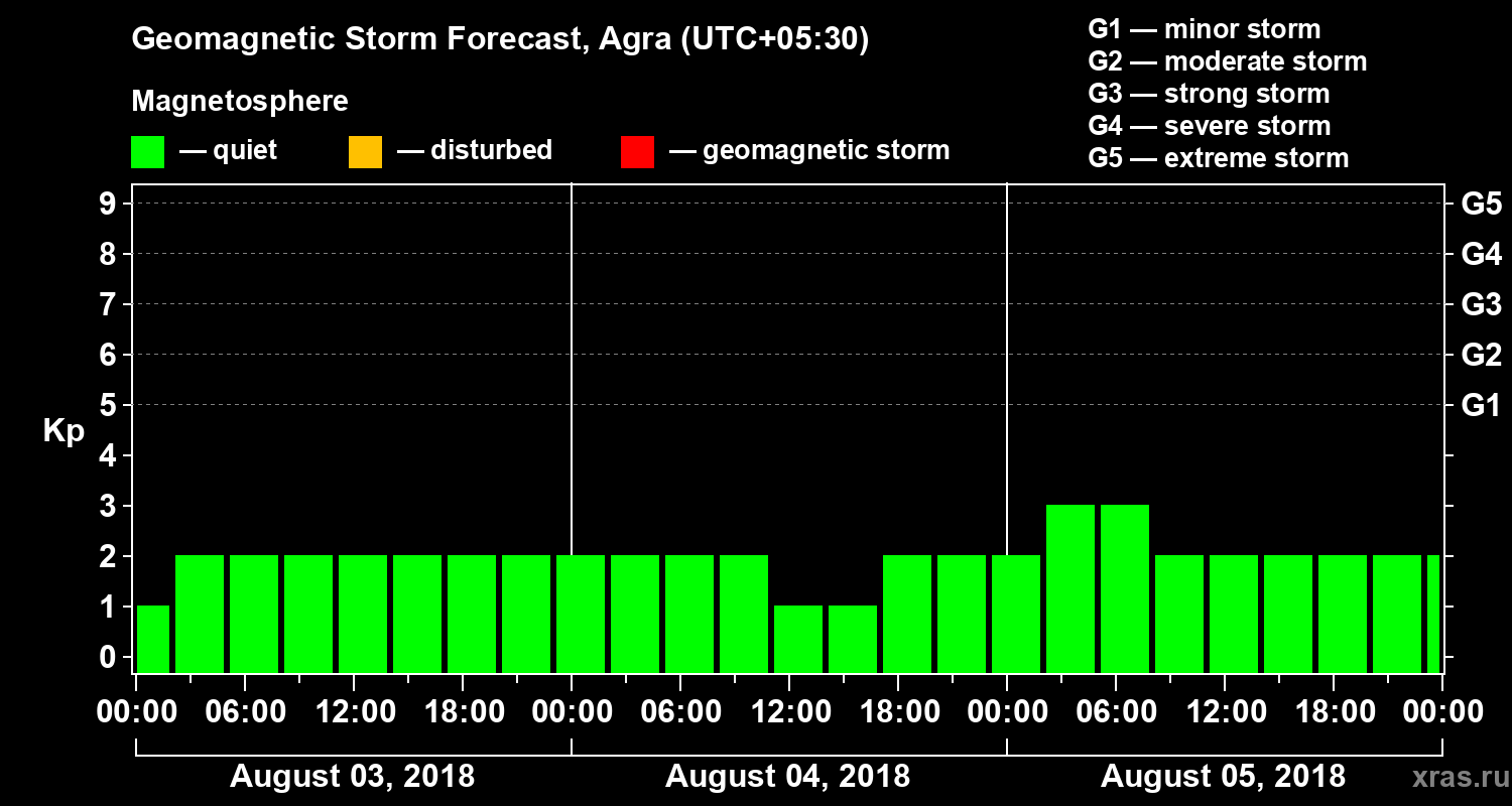 Geomagnetic storm forecast in Agra for Aug 03, 2018