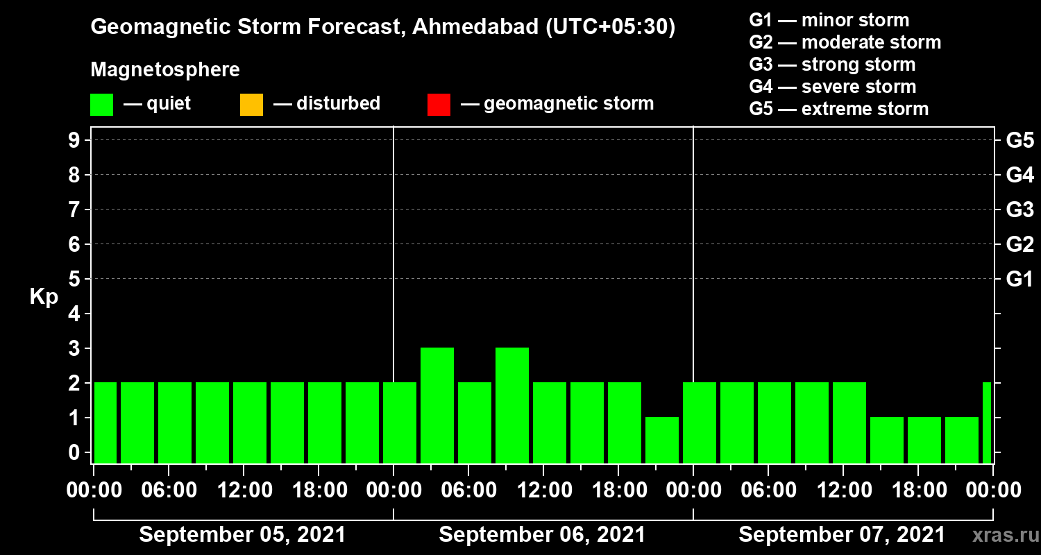Geomagnetic storm forecast in Ahmedabad for Sep 05, 2021