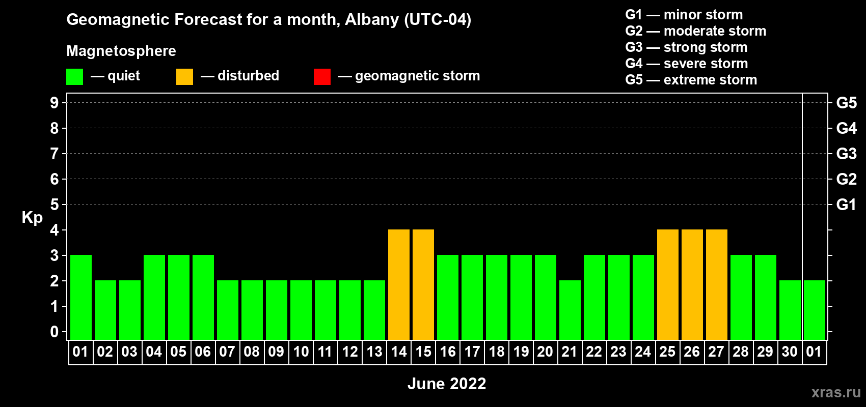 Geomagnetic storm forecast in Albany for Jun 01, 2022