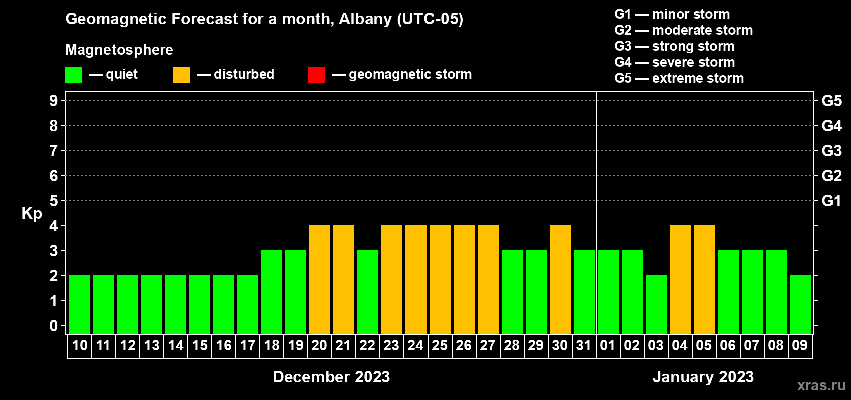 Geomagnetic storm forecast in Albany for Dec 10, 2022