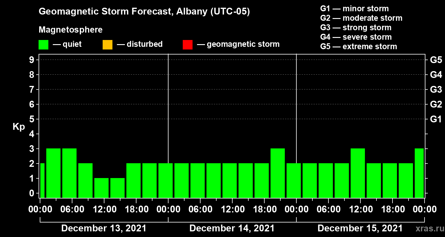 Geomagnetic storm forecast in Albany for Dec 13, 2021