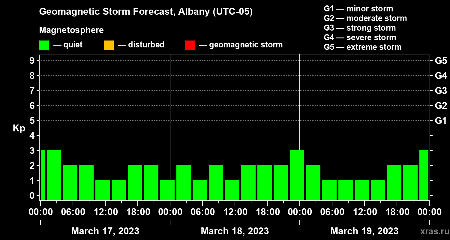 Geomagnetic storm forecast in Albany for Mar 17, 2023