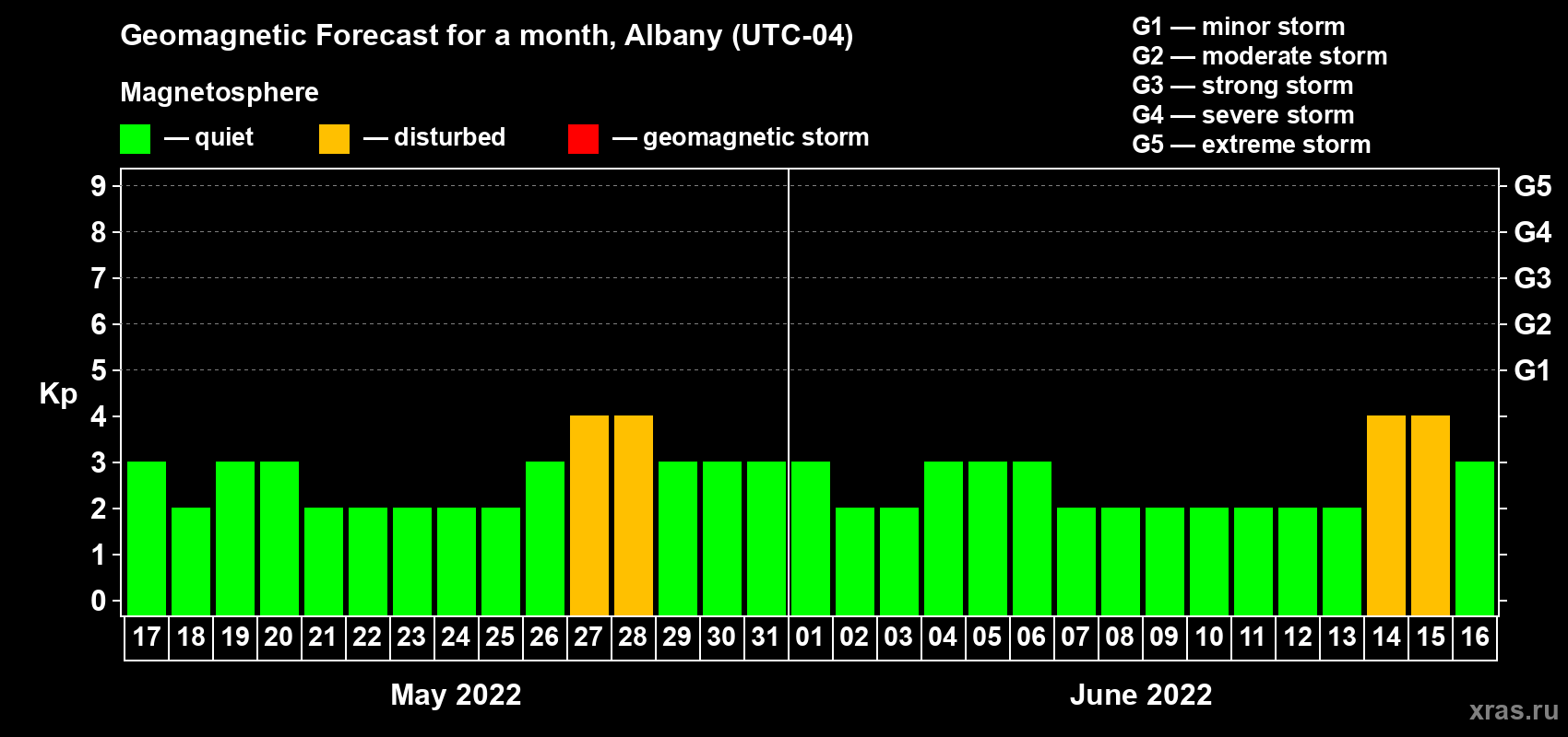 Geomagnetic storm forecast in Albany for May 17, 2022