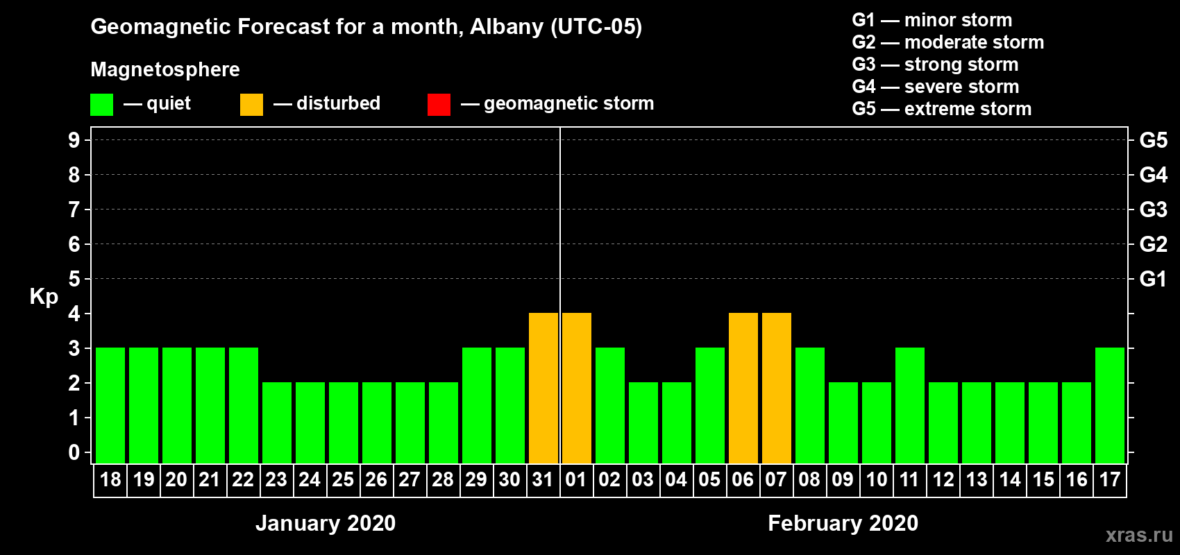 Geomagnetic storm forecast in Albany for Jan 18, 2020