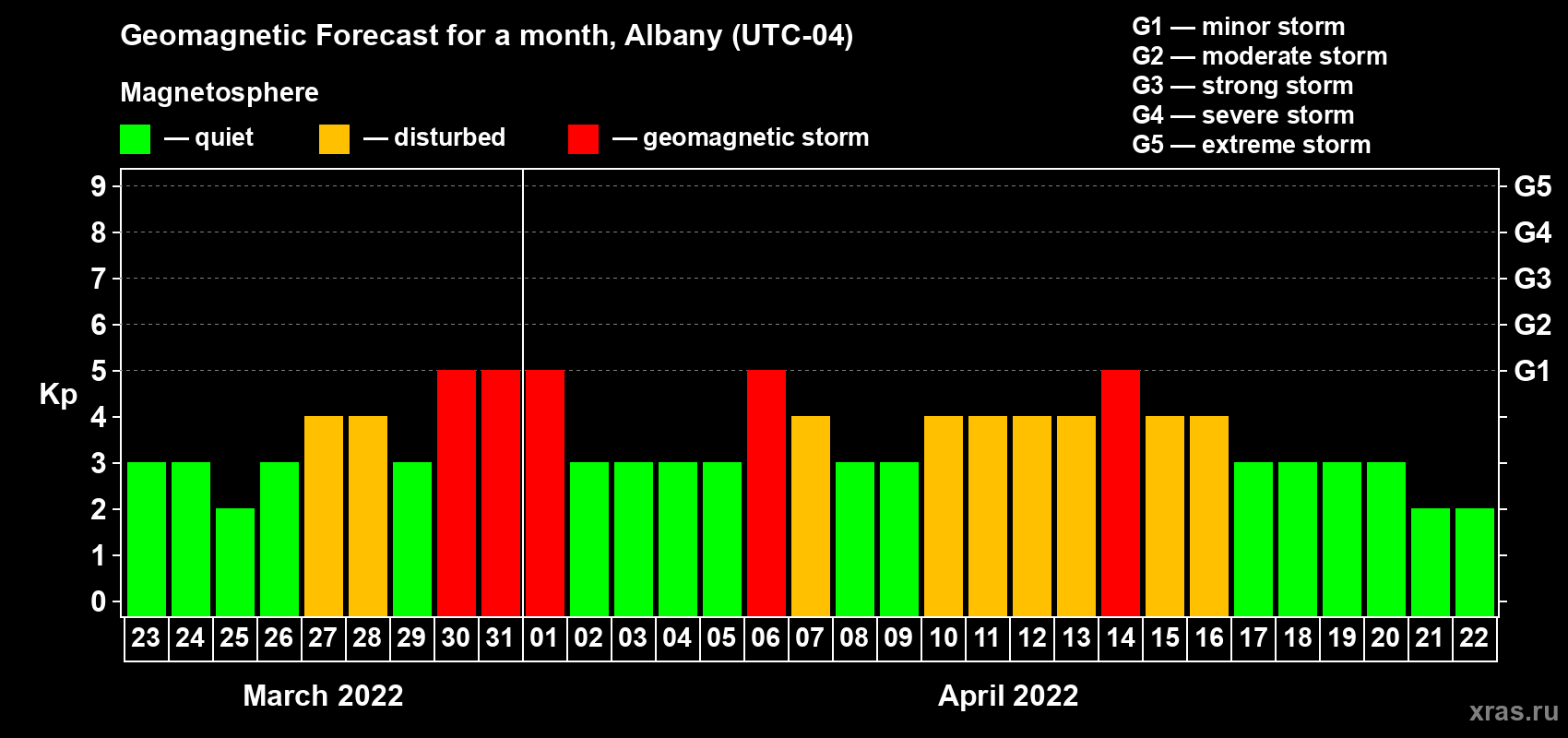 Geomagnetic storm forecast in Albany for Mar 23, 2022