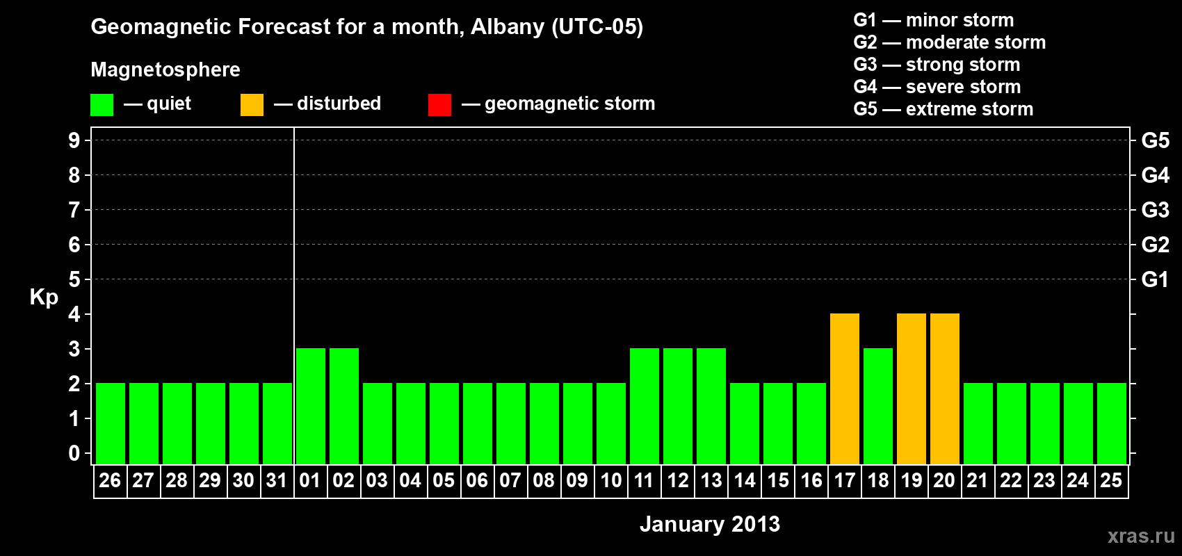 Geomagnetic storm forecast in Albany for Dec 26, 2012