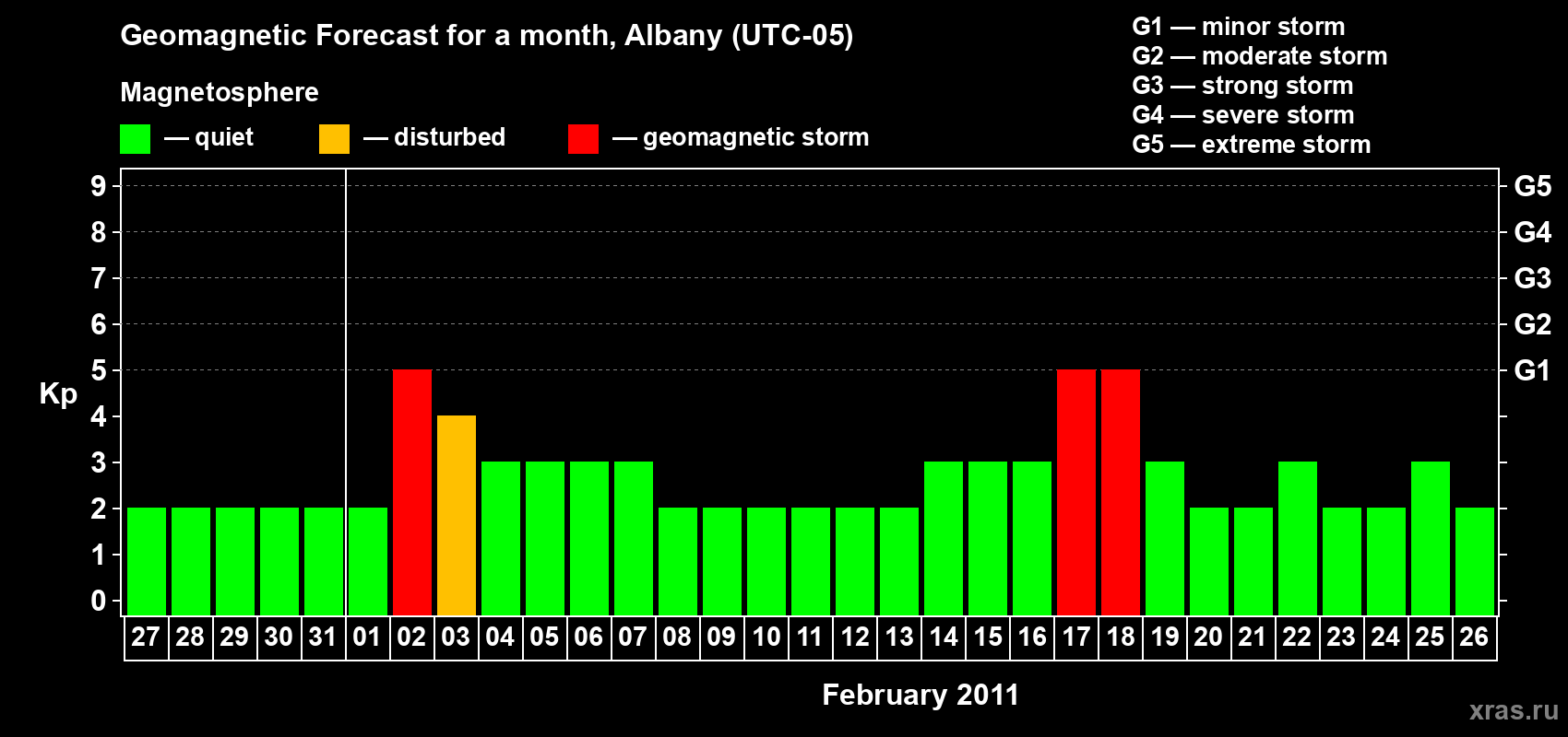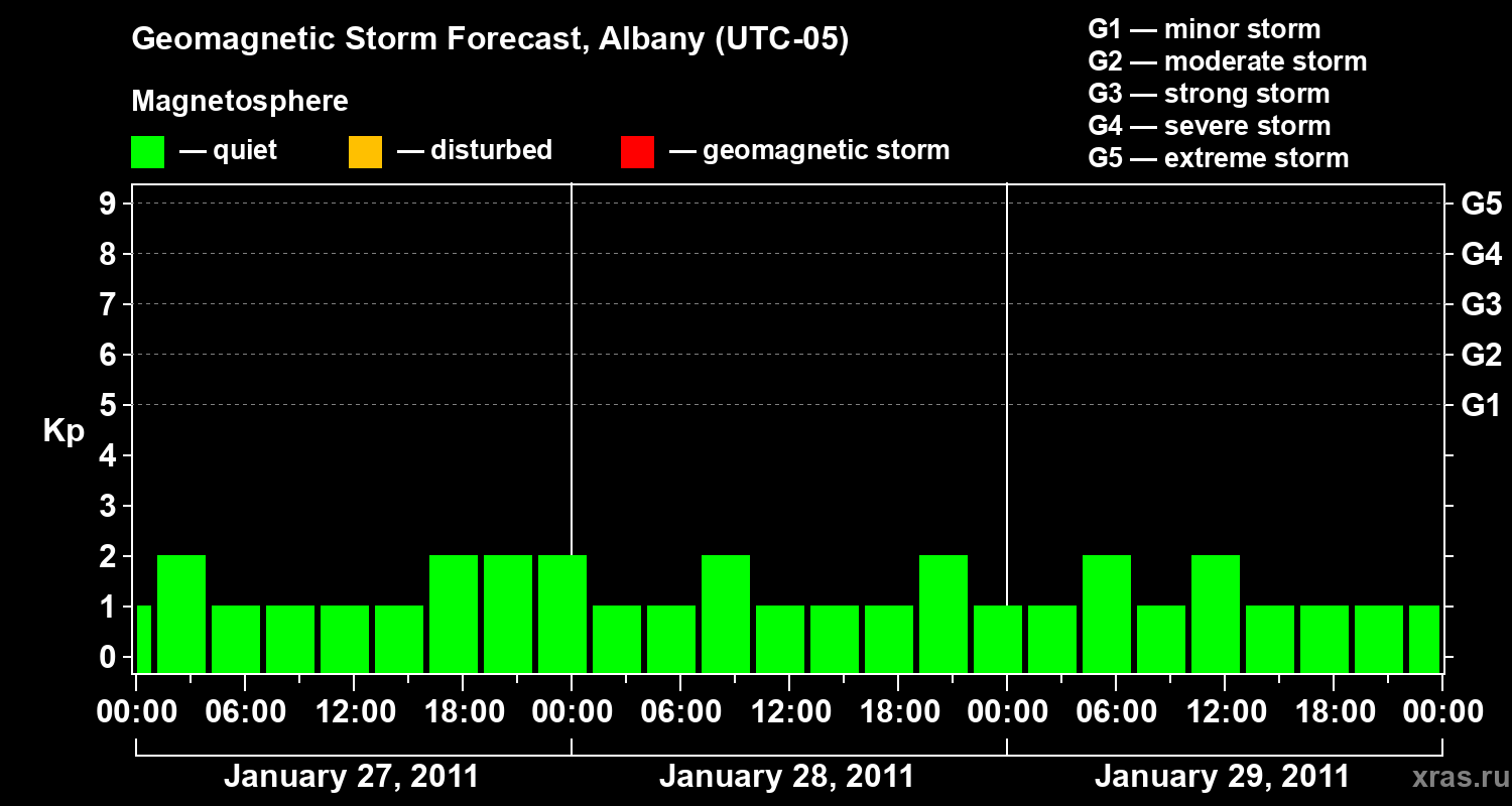 Geomagnetic storm forecast in Albany for Jan 27, 2011