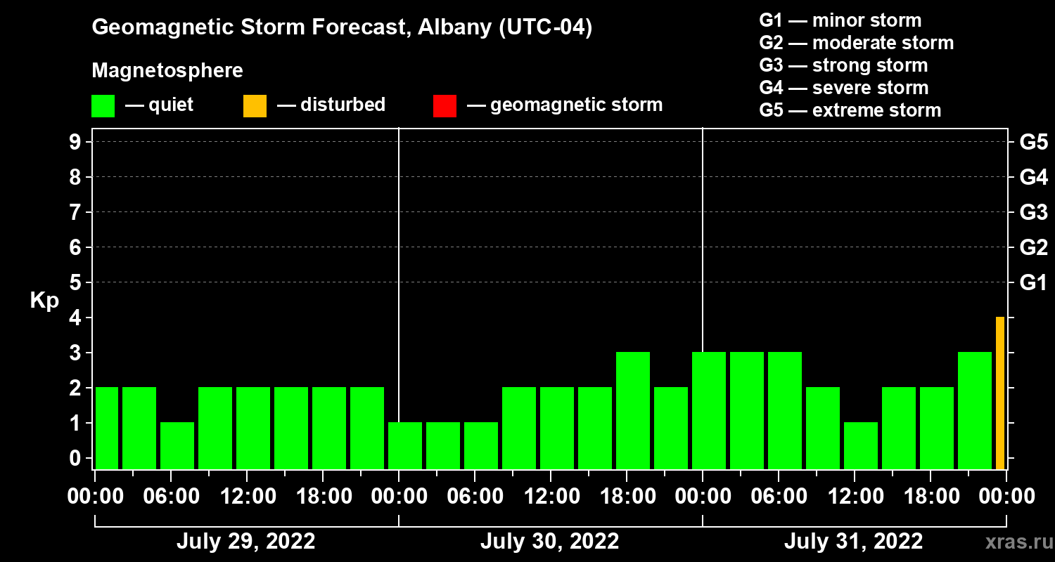 Geomagnetic storm forecast in Albany for Jul 29, 2022
