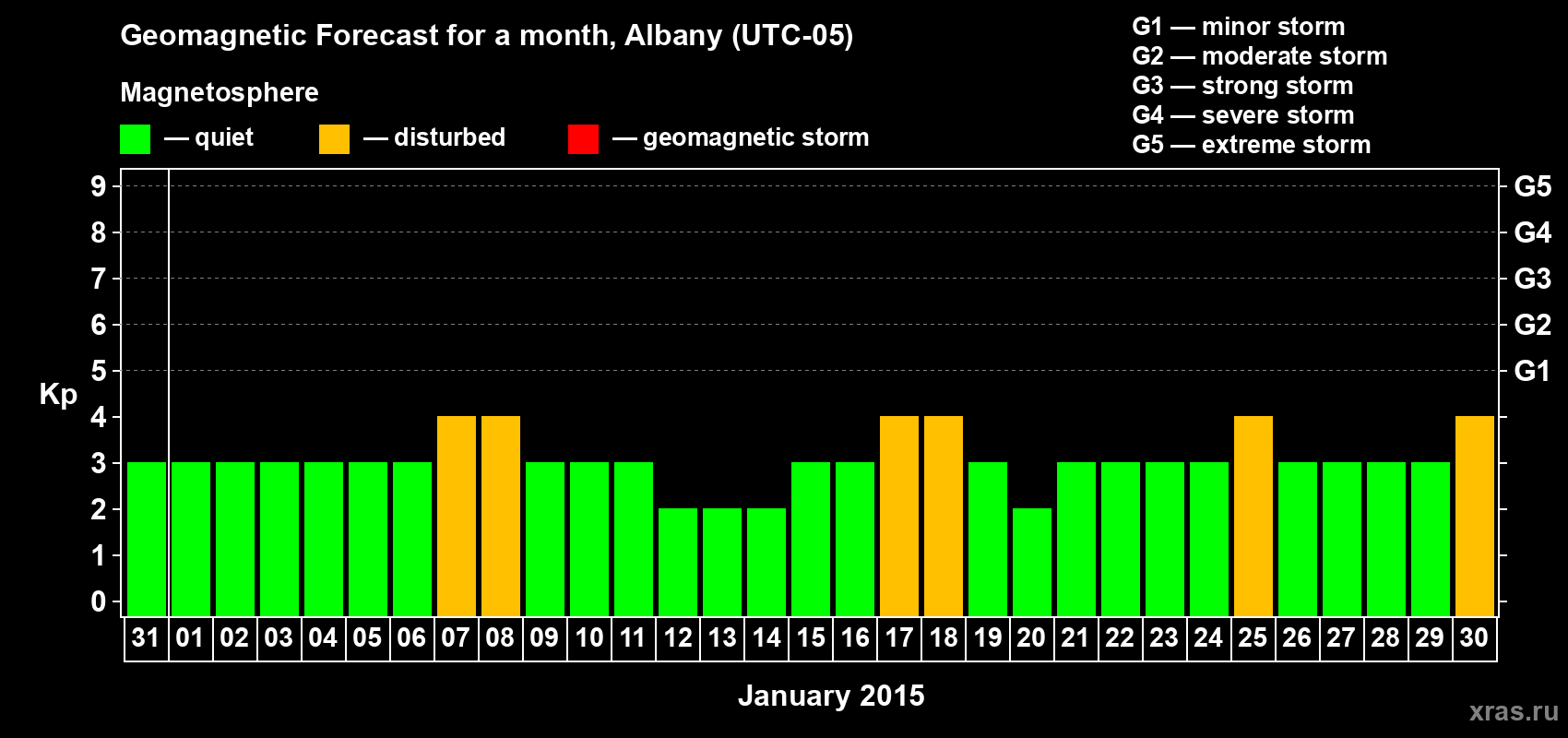 Geomagnetic storm forecast in Albany for Dec 31, 2014