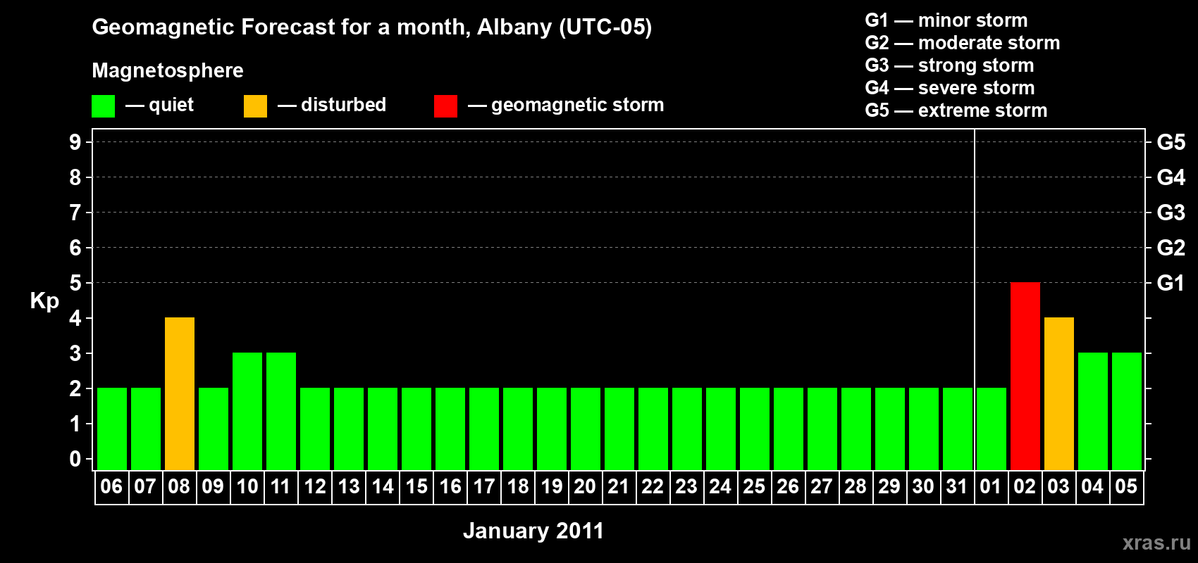 Geomagnetic storm forecast in Albany for Jan 06, 2011