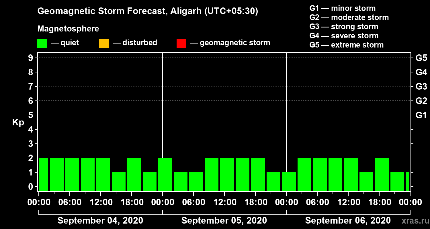 Geomagnetic activity forecast in Aligarh — Sep 04, 2020