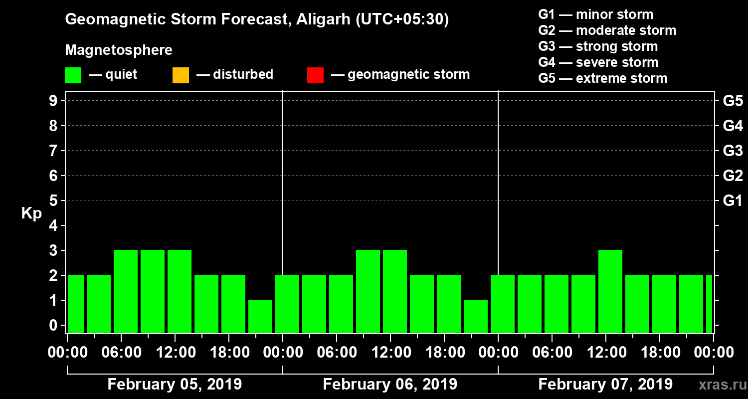 Geomagnetic storm forecast in Aligarh for Feb 05, 2019