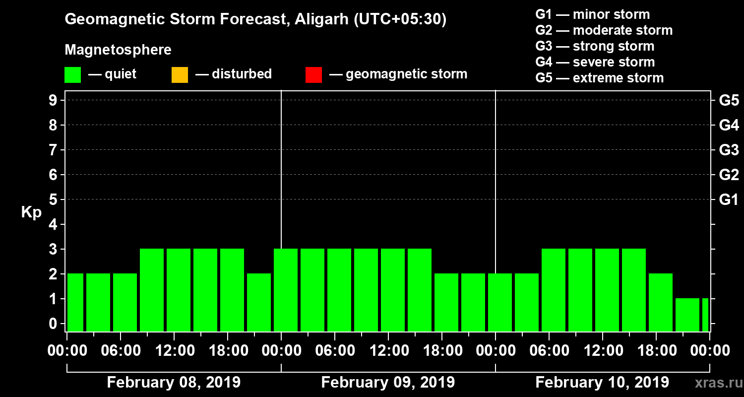 Geomagnetic activity forecast in Aligarh — Feb 08, 2019