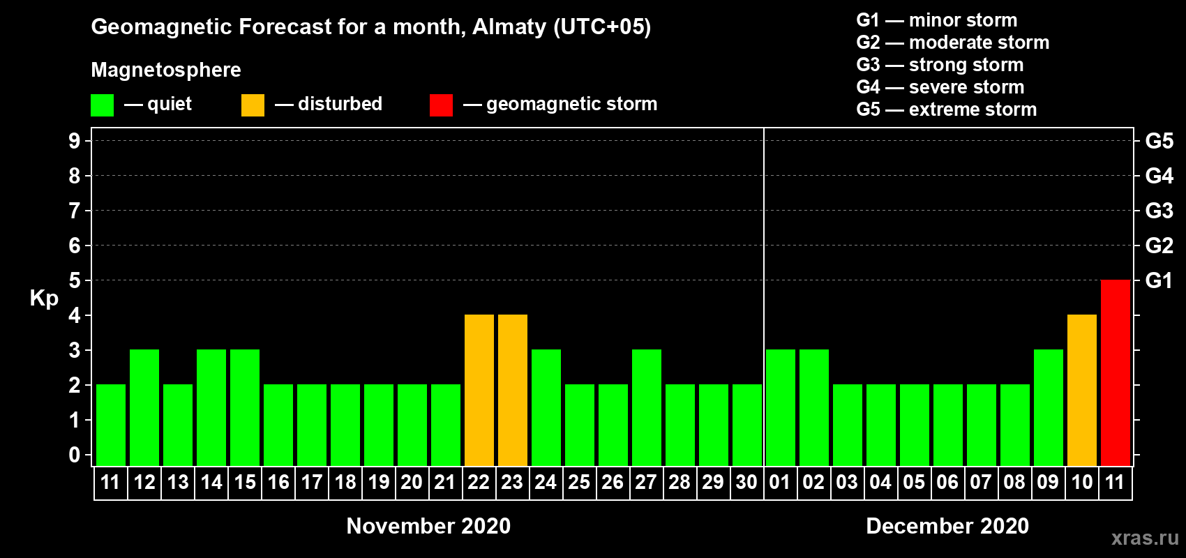 Geomagnetic storm forecast in Almaty for Nov 11, 2020