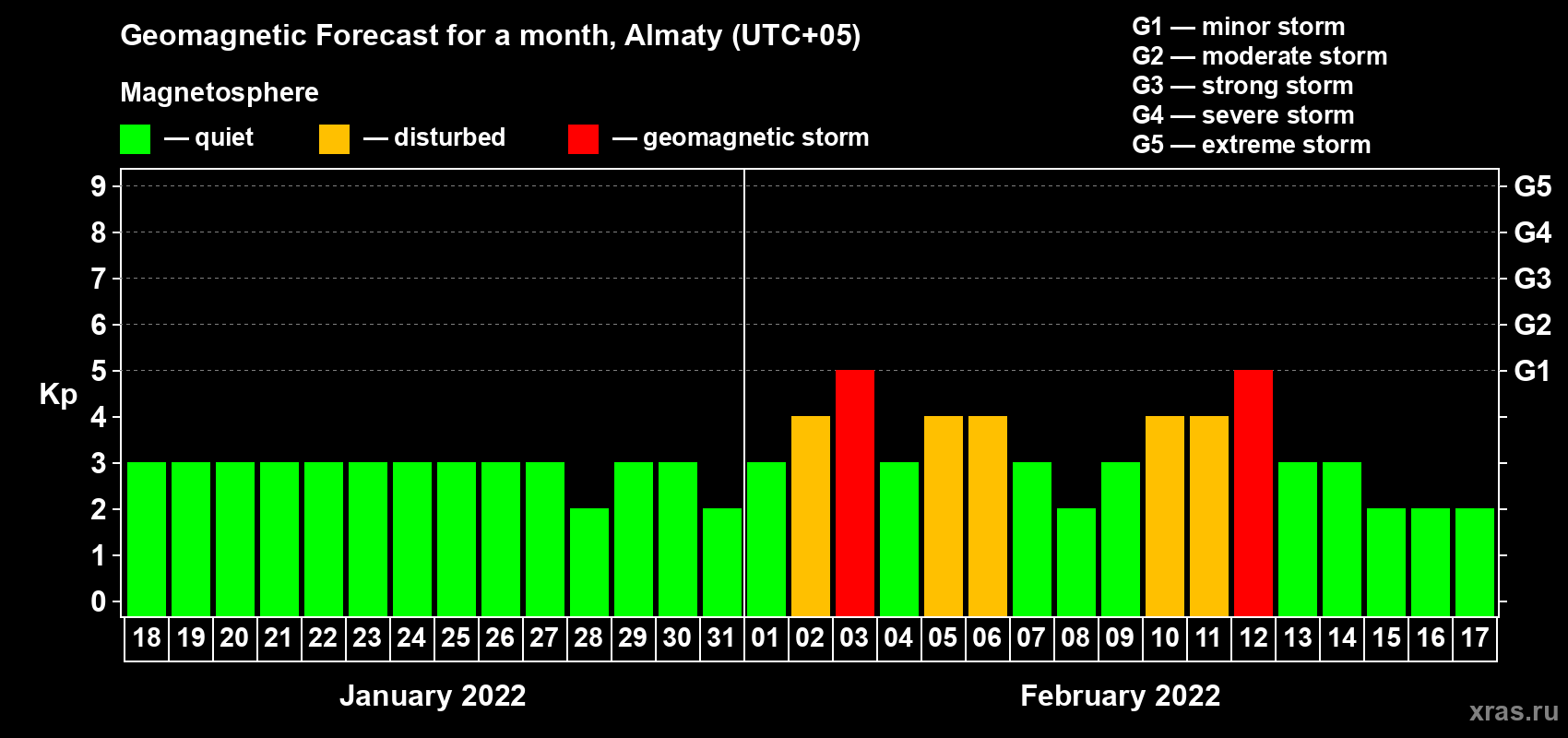 Geomagnetic storm forecast in Almaty for Jan 18, 2022