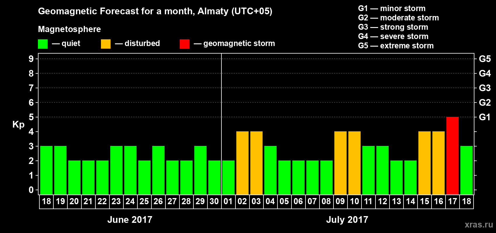 Geomagnetic activity forecast in Almaty — Jun 18, 2017