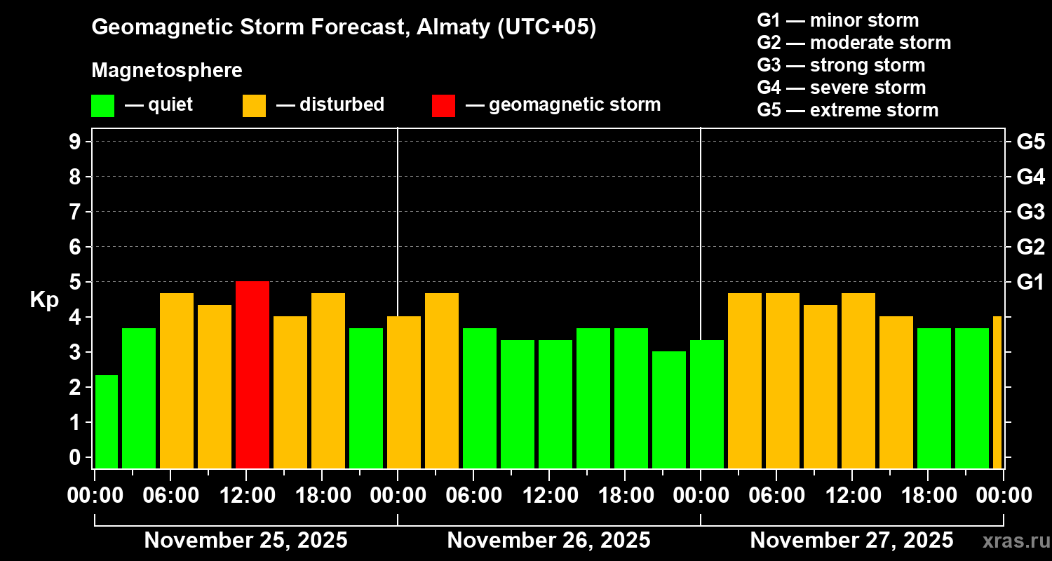Geomagnetic storm forecast in Almaty for Nov 25, 2025