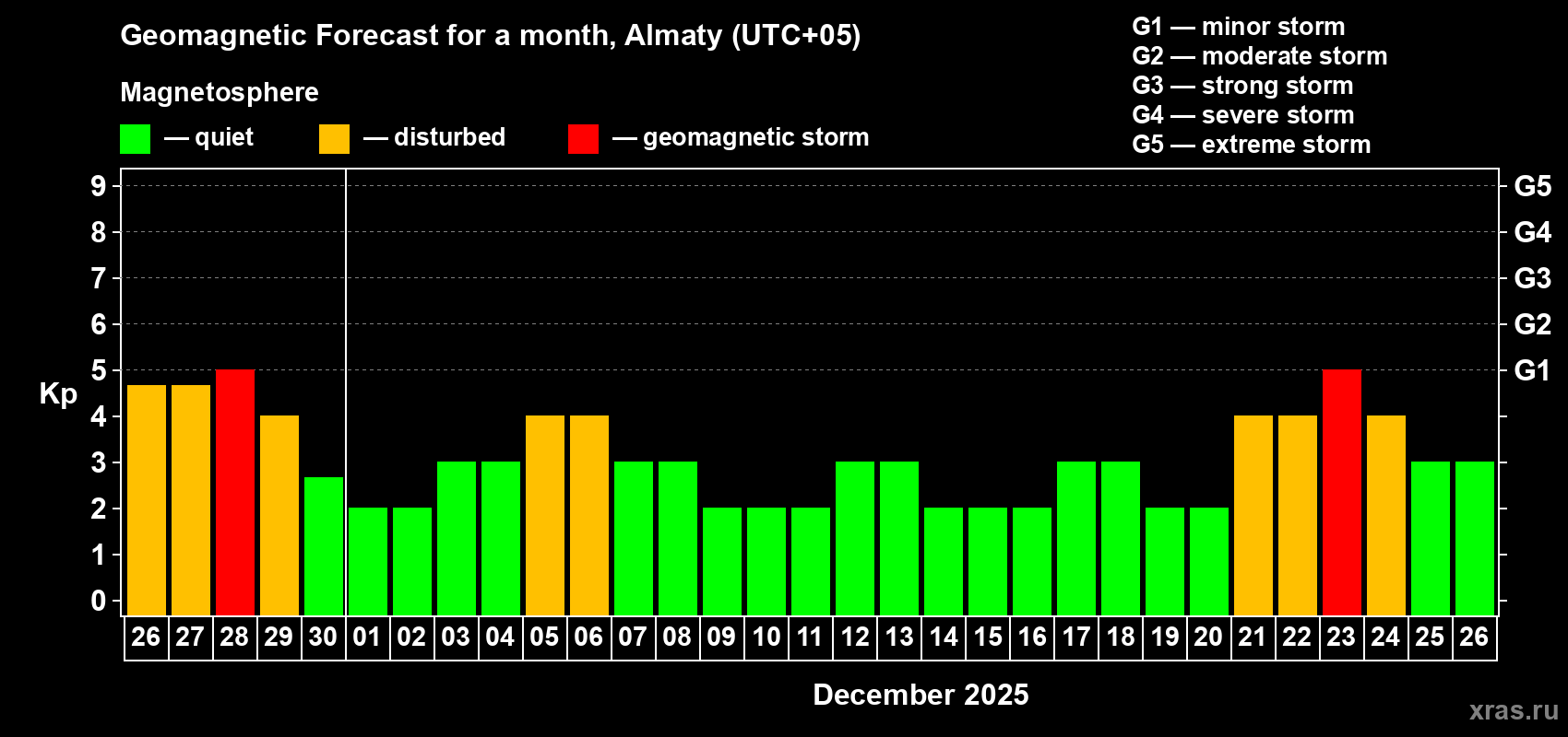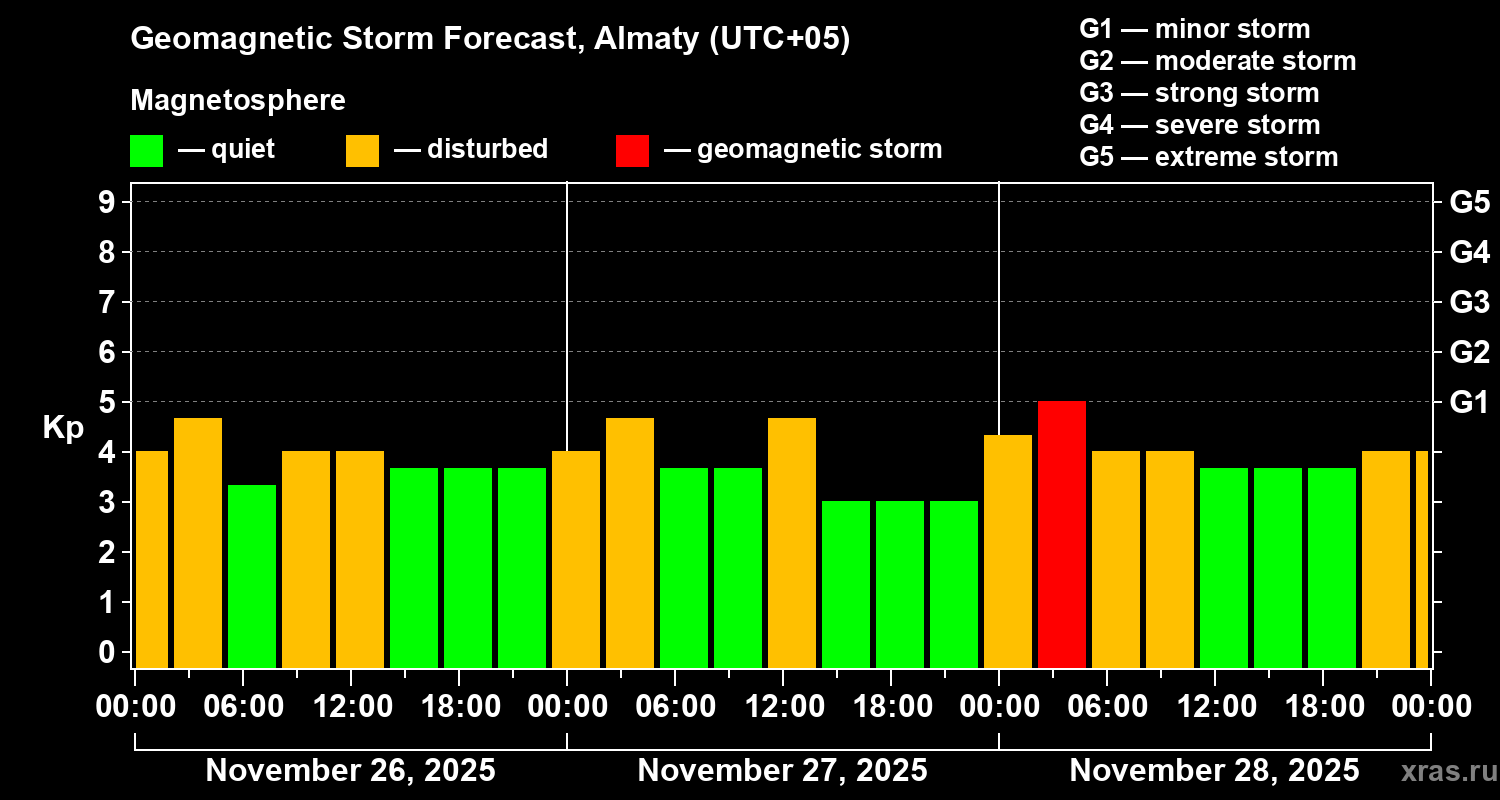 Geomagnetic storm forecast in Almaty for Nov 26, 2025