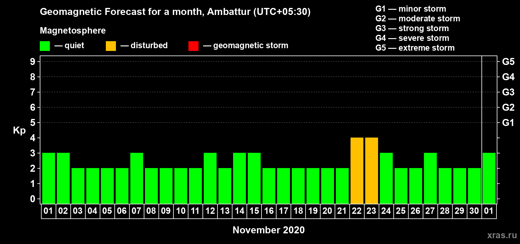 Geomagnetic storm forecast in Ambattur for Nov 01, 2020