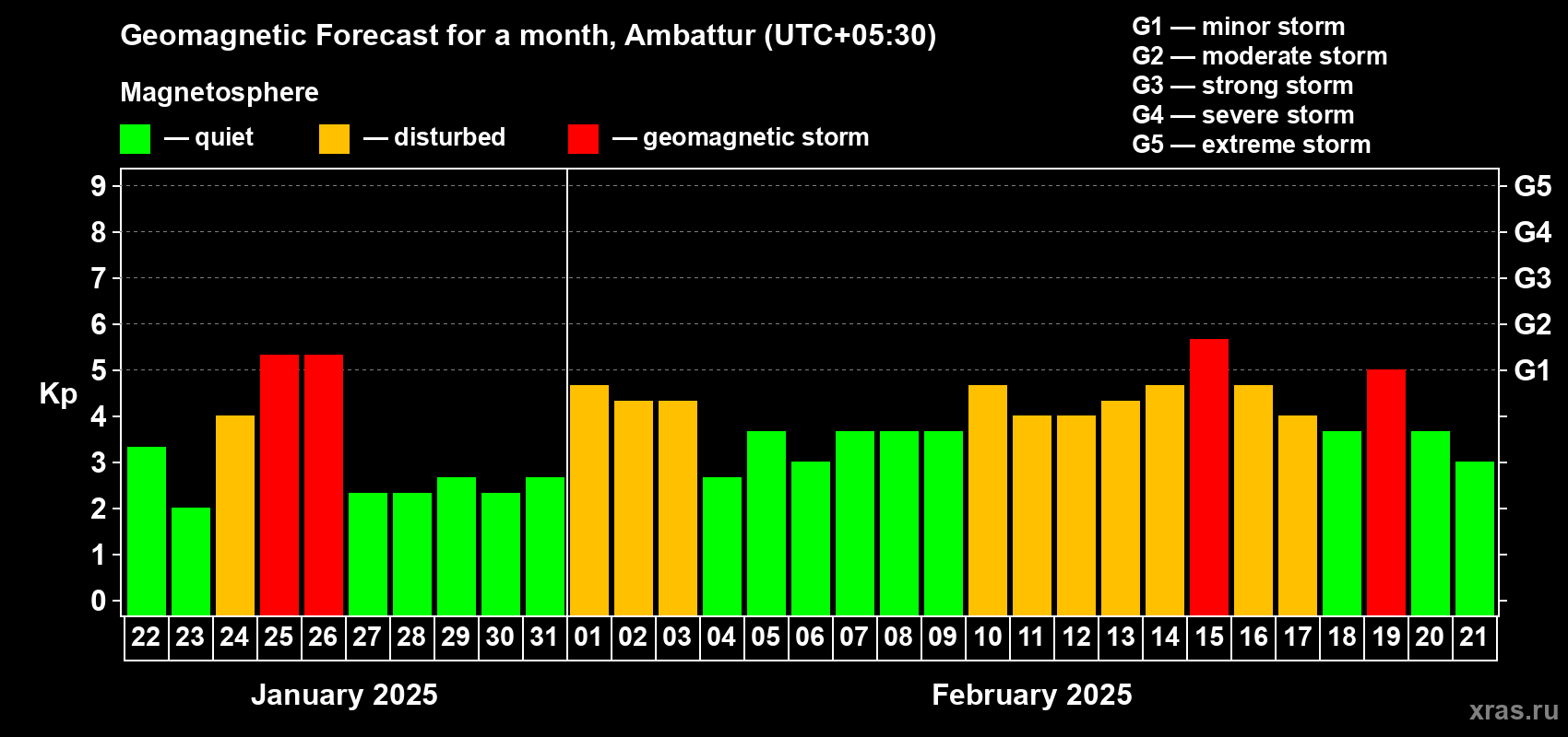 Geomagnetic storm forecast in Ambattur for Jan 22, 2025