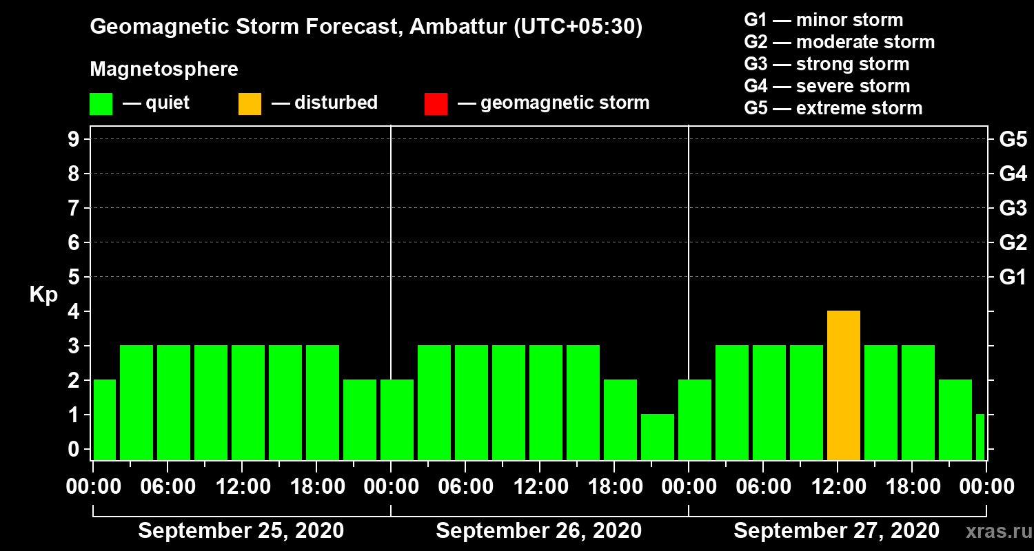 Geomagnetic storm forecast in Ambattur for Sep 25, 2020