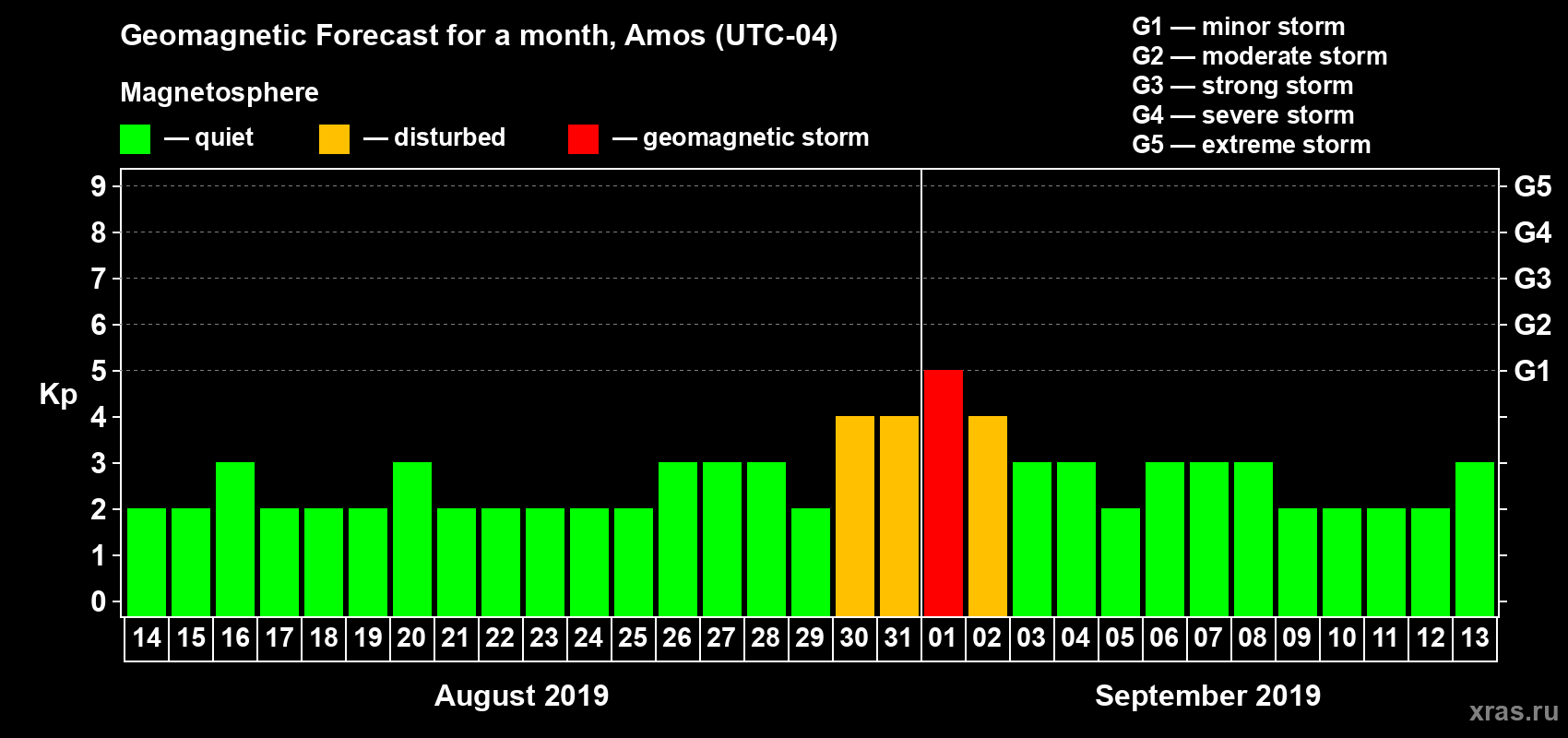 Geomagnetic activity forecast in Amos — Aug 14, 2019