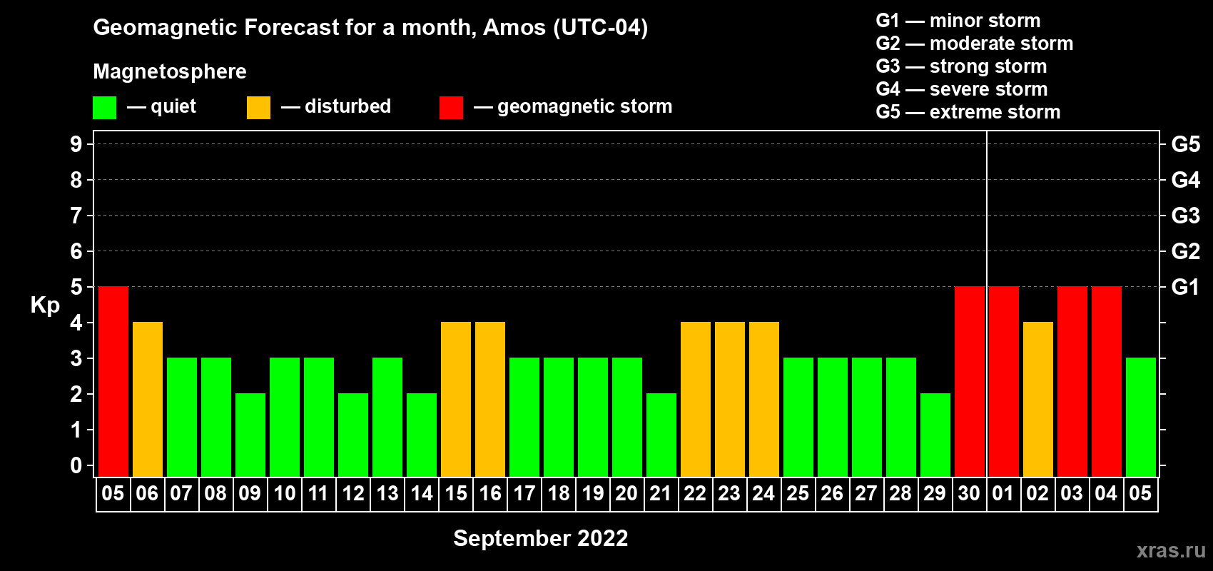 Geomagnetic storm forecast in Amos for Sep 05, 2022