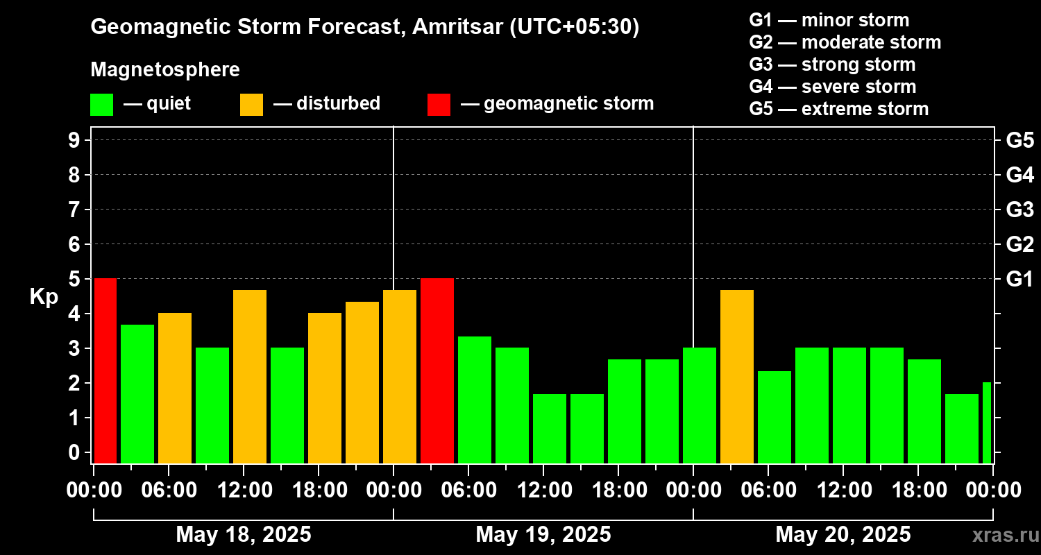 Geomagnetic storm forecast in Amritsar for May 18, 2025