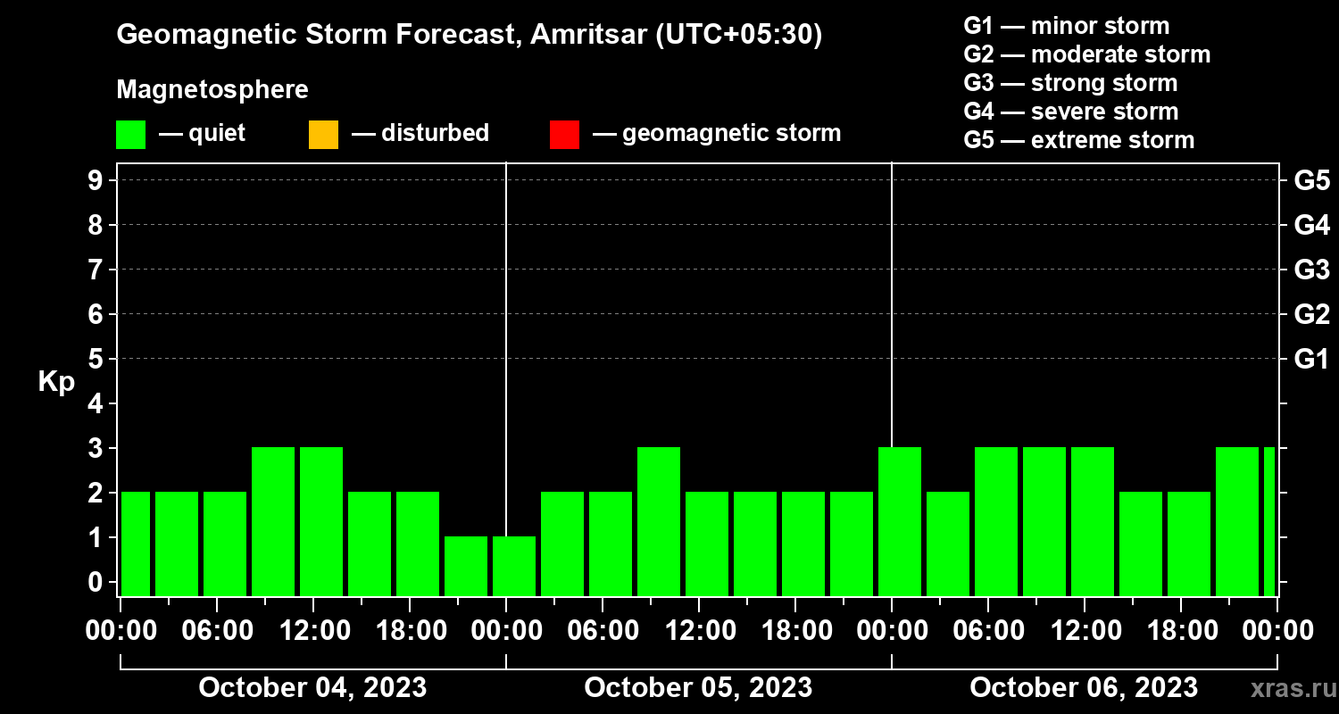 Geomagnetic storm forecast in Amritsar for Oct 04, 2023