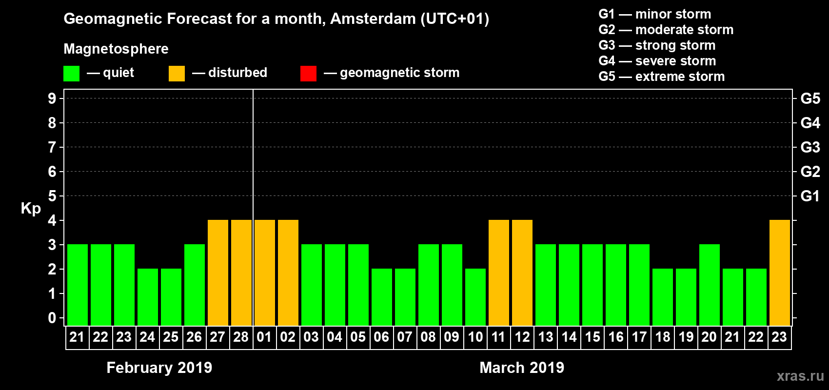 Geomagnetic storm forecast in Amsterdam for Feb 21, 2019