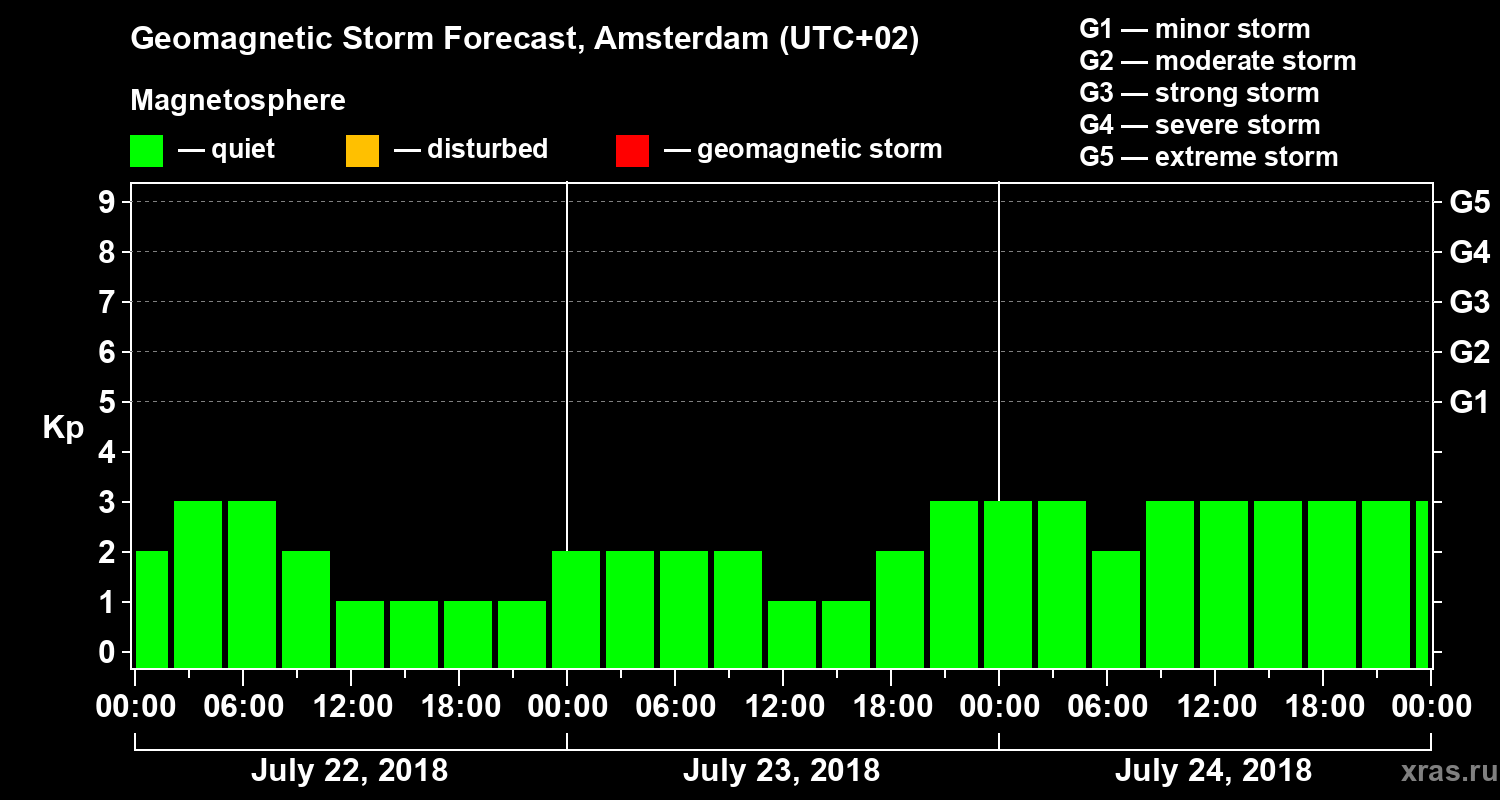 Geomagnetic storm forecast in Amsterdam for Jul 22, 2018