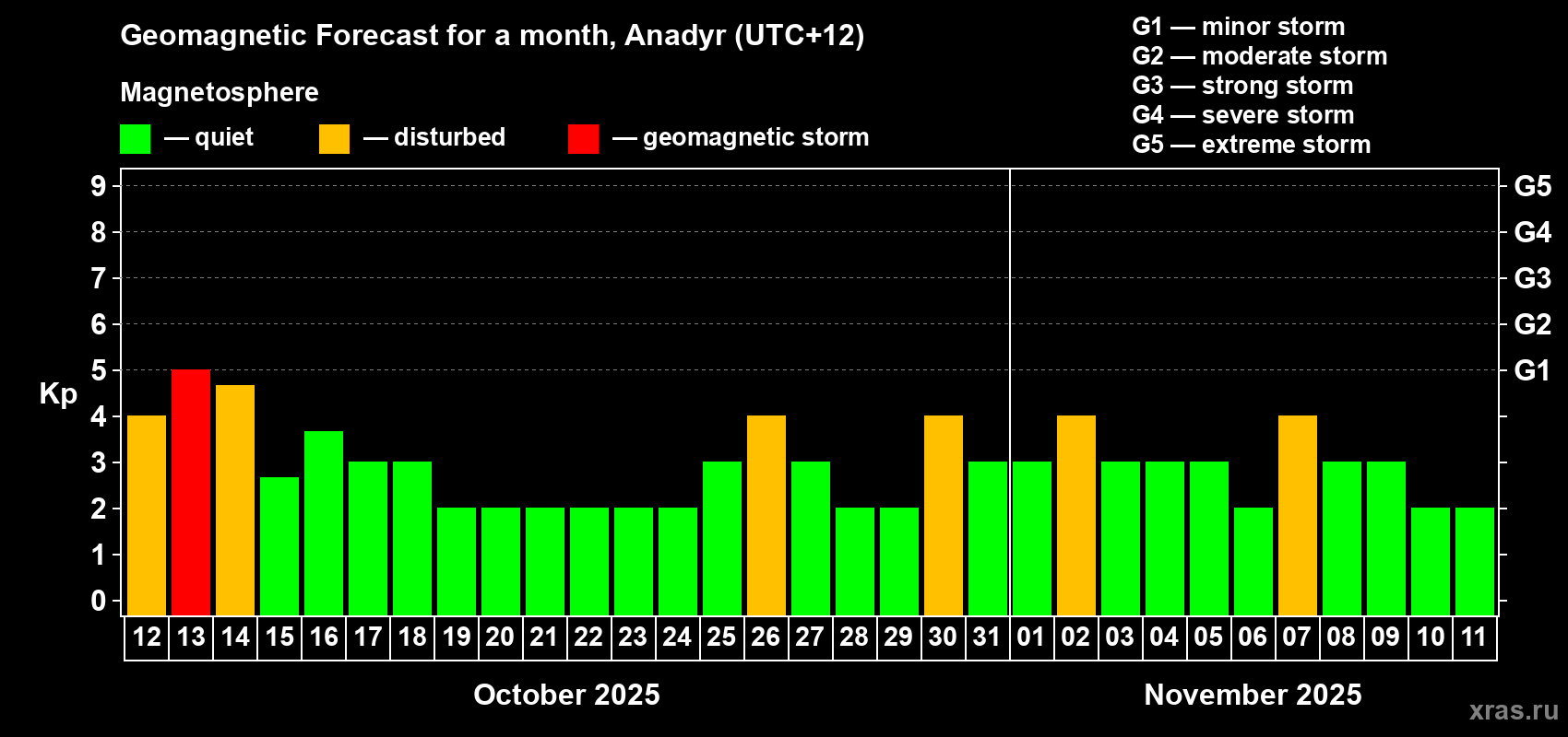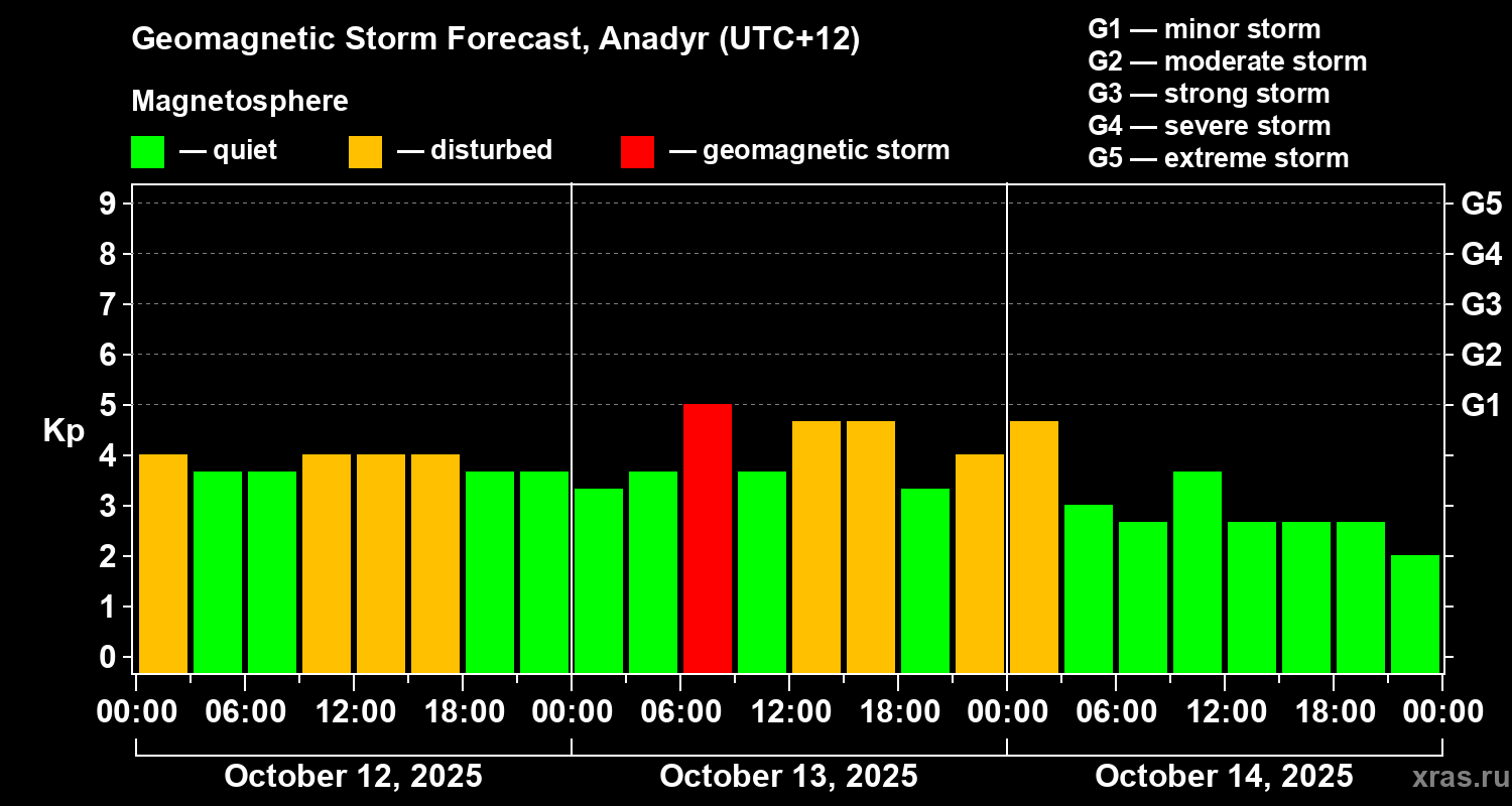 Geomagnetic storm forecast in Anadyr for Oct 12, 2025