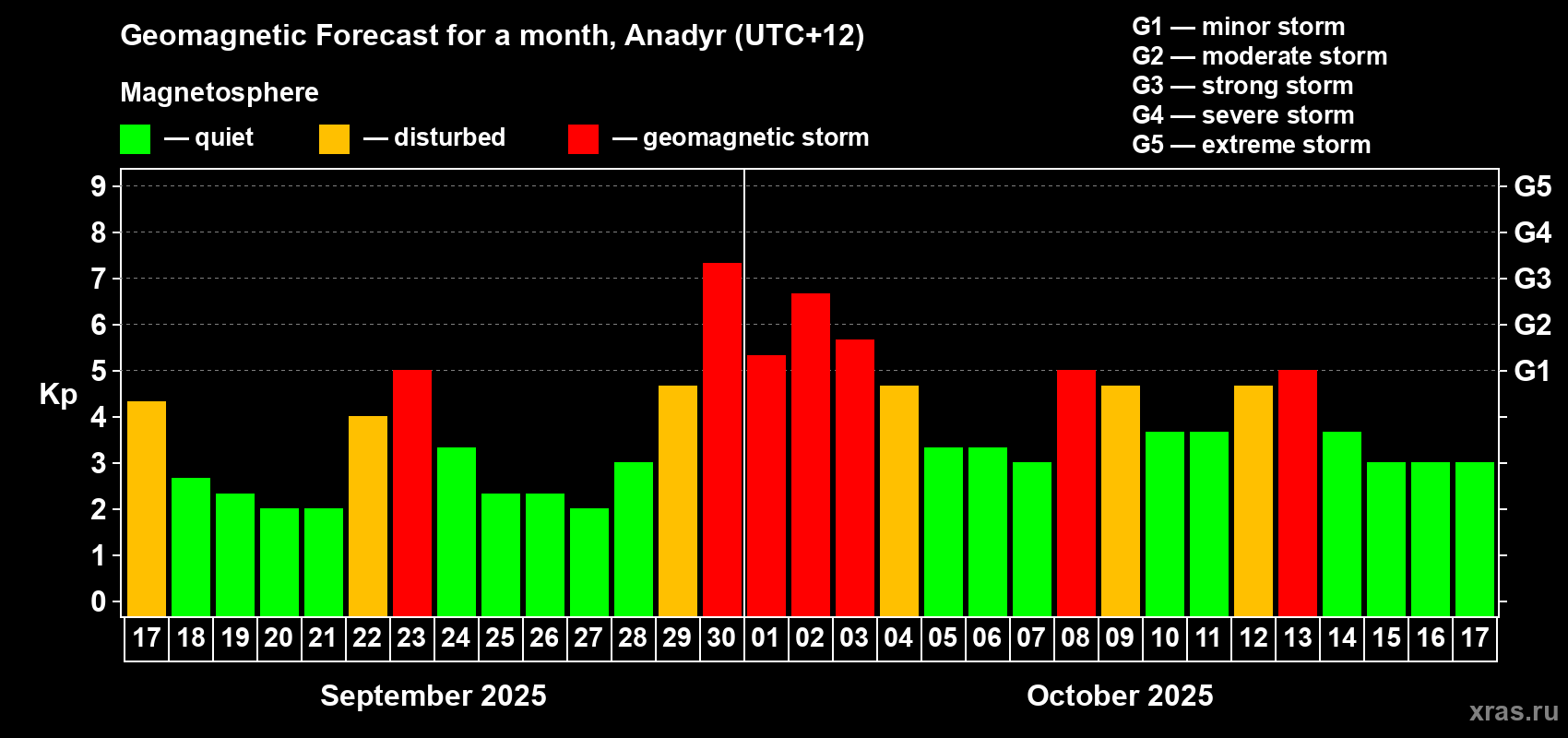 Geomagnetic storm forecast in Anadyr for Sep 17, 2025