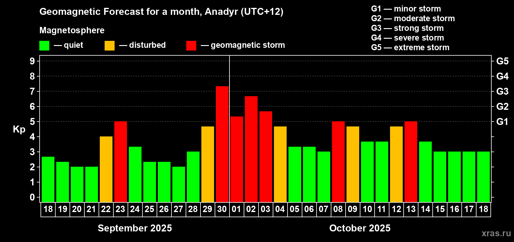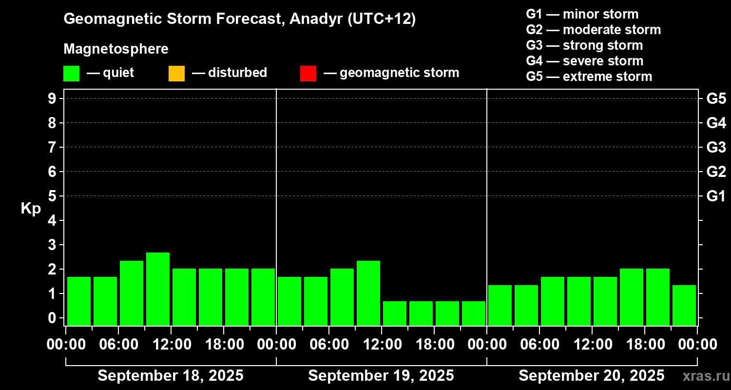 Geomagnetic storm forecast in Anadyr for Sep 18, 2025