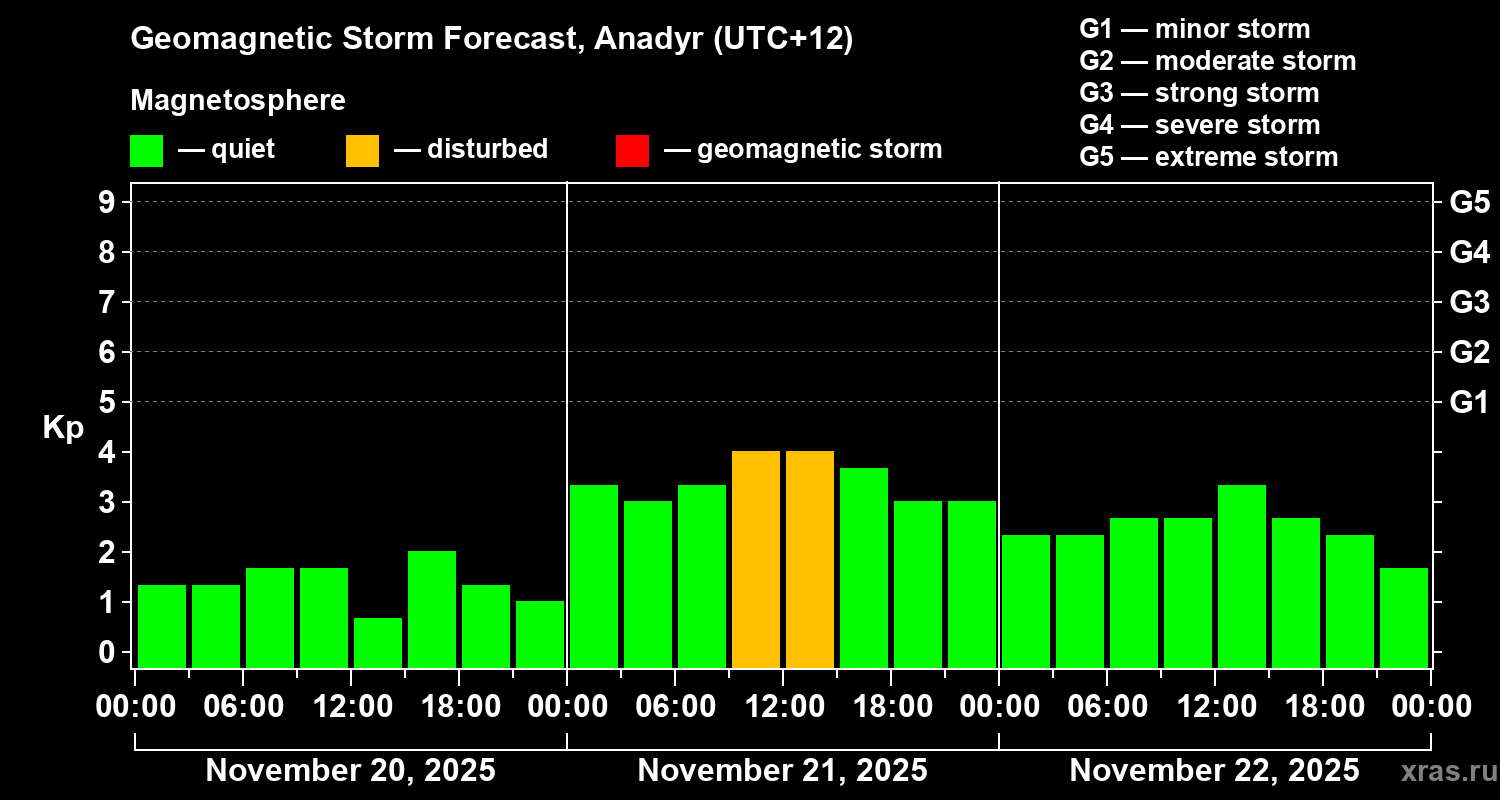 Geomagnetic storm forecast in Anadyr for Nov 20, 2025