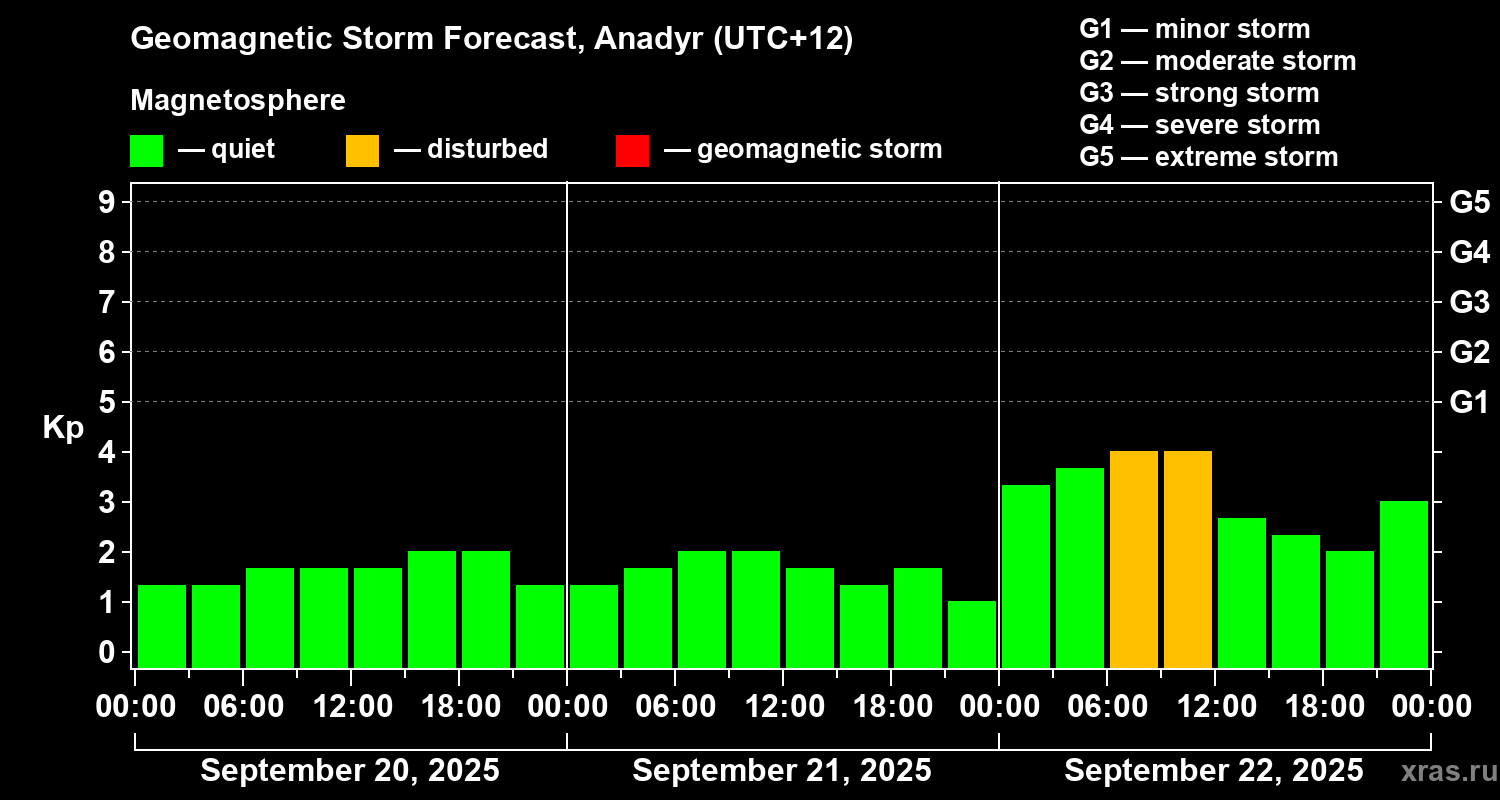Geomagnetic storm forecast in Anadyr for Sep 20, 2025