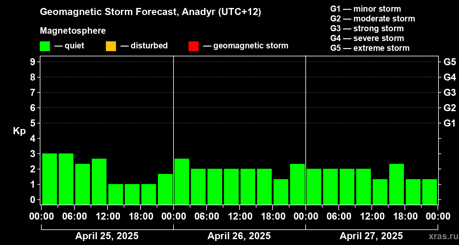 Geomagnetic storm forecast in Anadyr for Apr 25, 2025