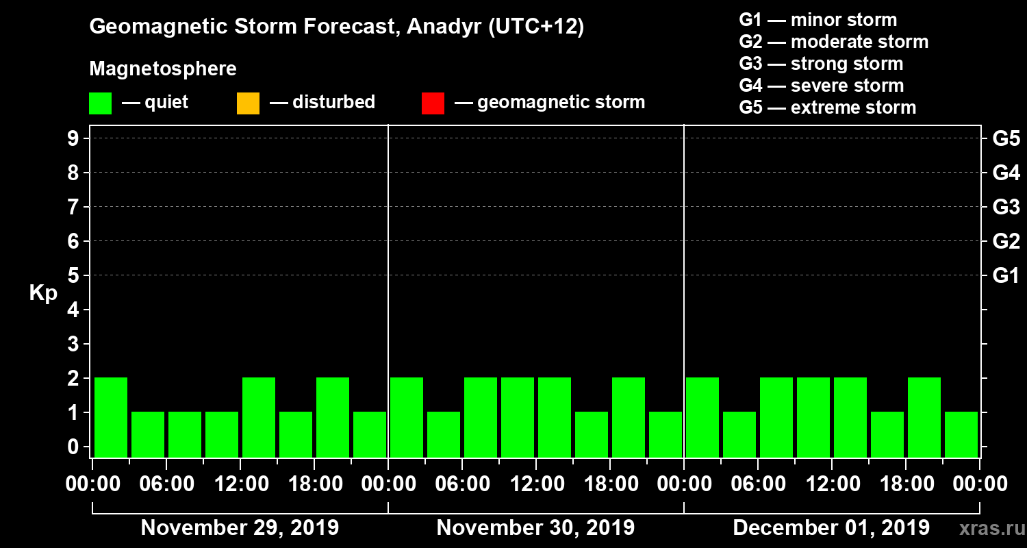 Geomagnetic storm forecast in Anadyr for Nov 29, 2019