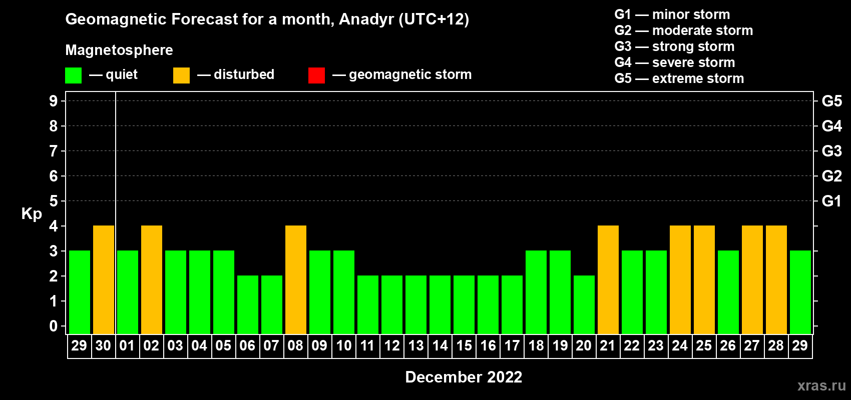 Geomagnetic storm forecast in Anadyr for Nov 29, 2022