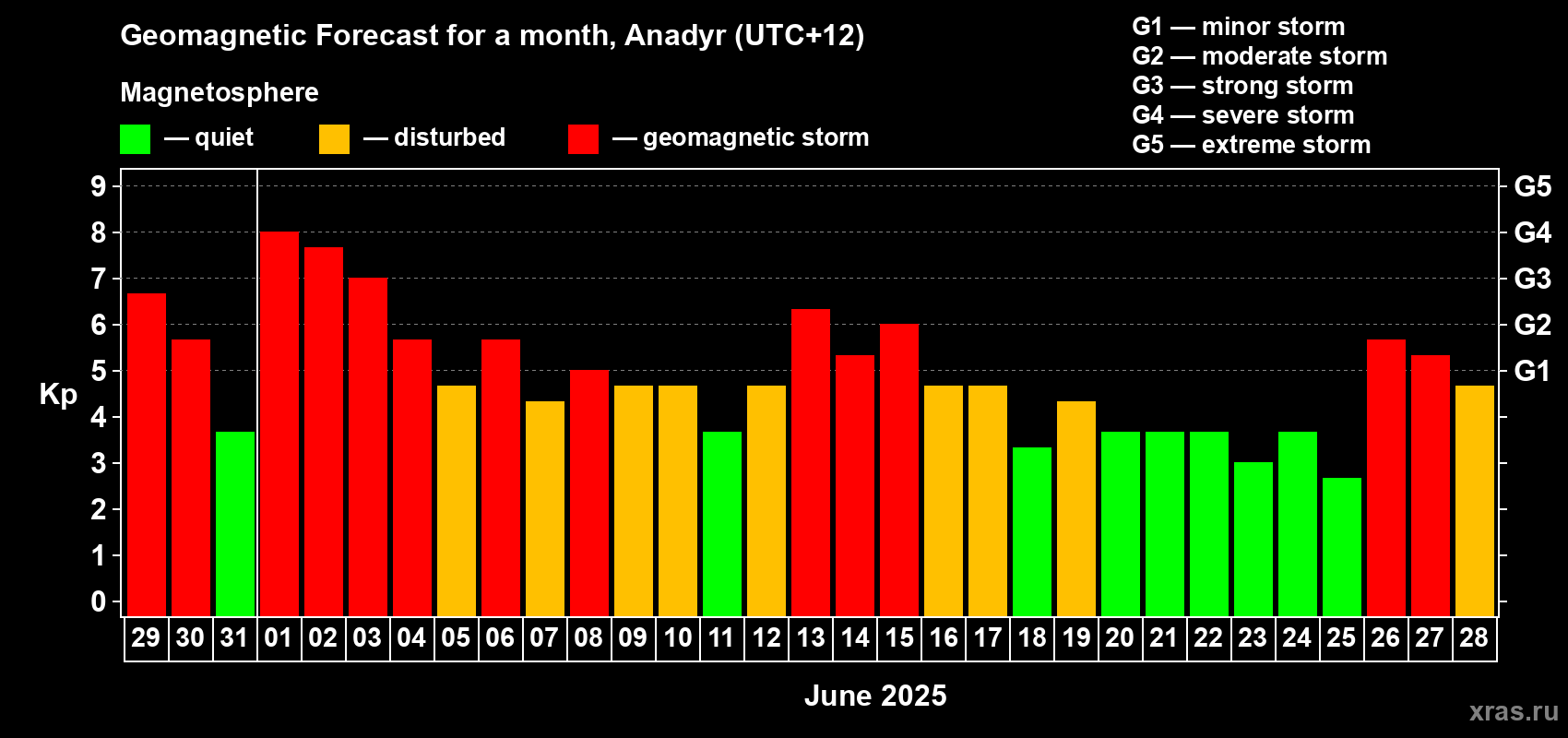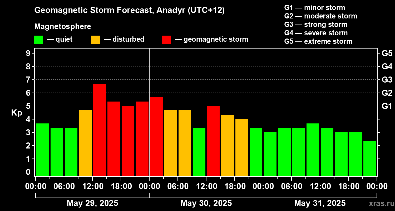 Geomagnetic storm forecast in Anadyr for May 29, 2025