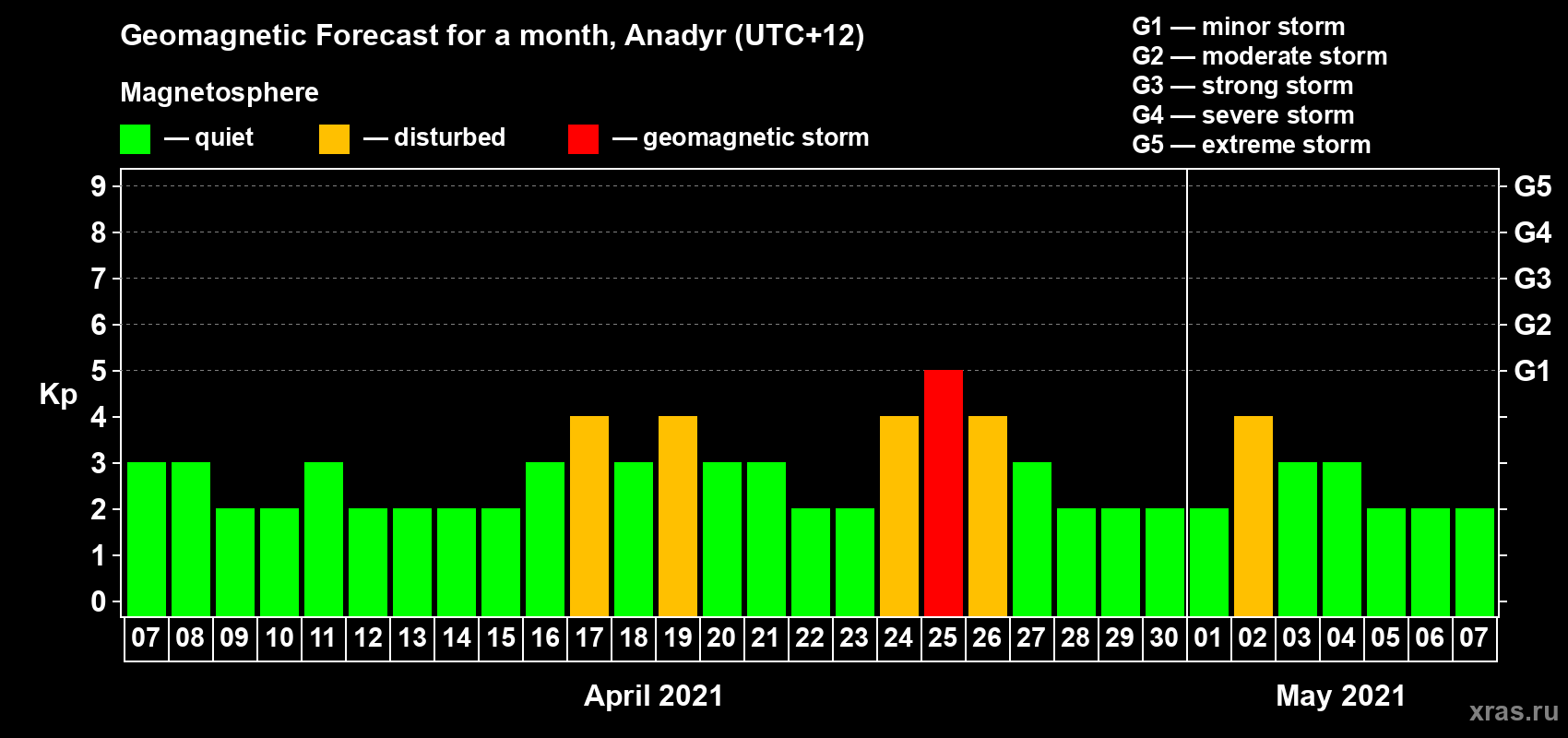 Geomagnetic storm forecast in Anadyr for Apr 07, 2021