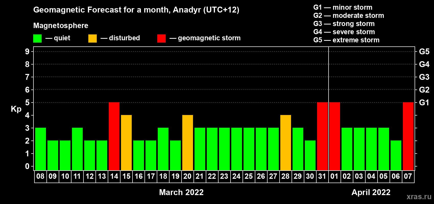 Geomagnetic storm forecast in Anadyr for Mar 08, 2022