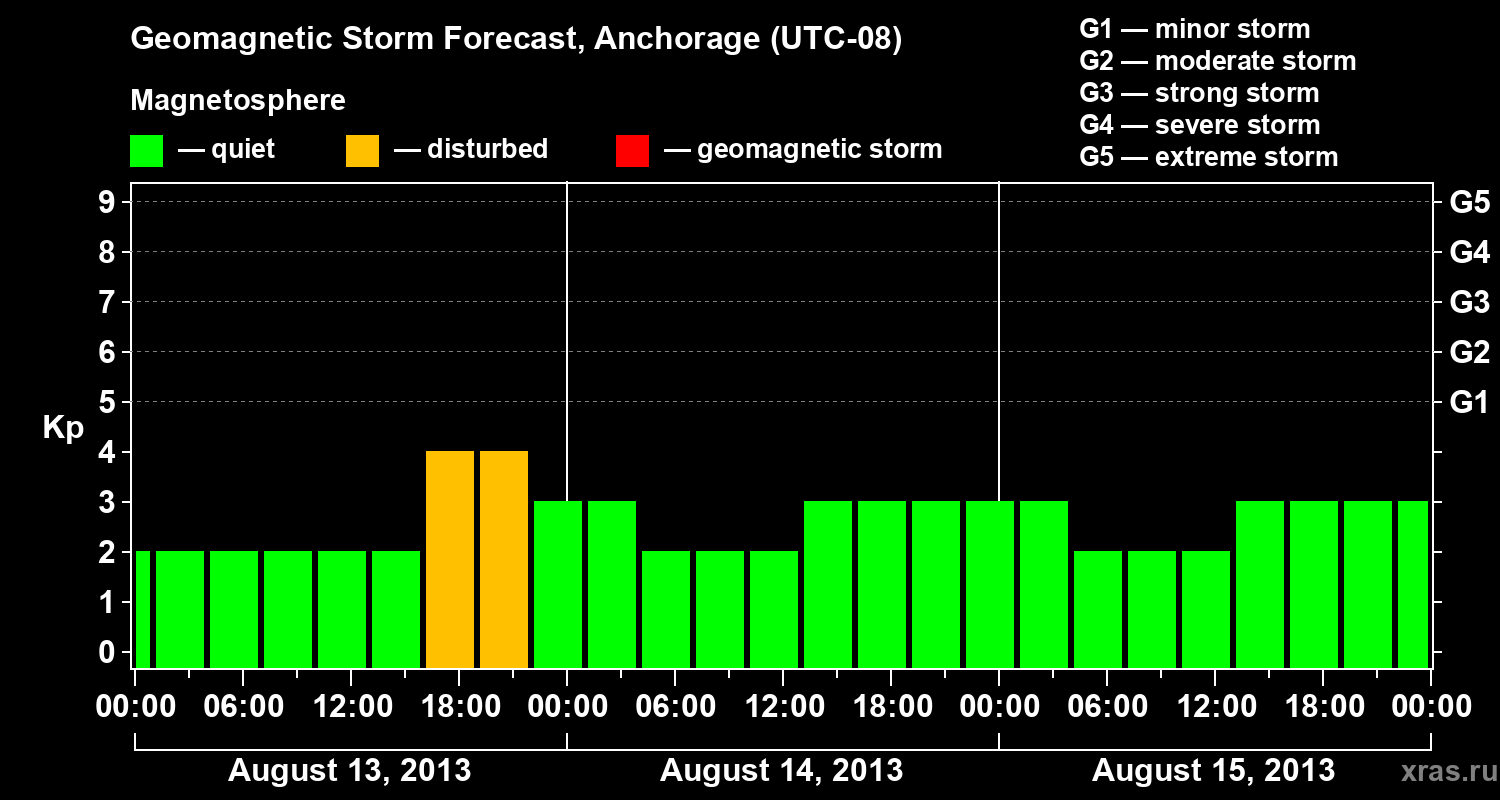 Geomagnetic storm forecast in Anchorage for Aug 13, 2013