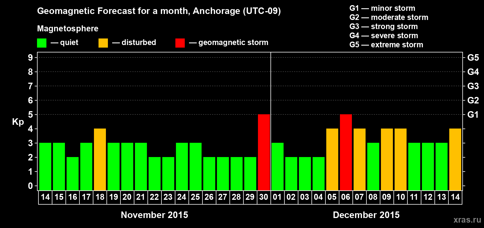 Geomagnetic storm forecast in Anchorage for Nov 14, 2015