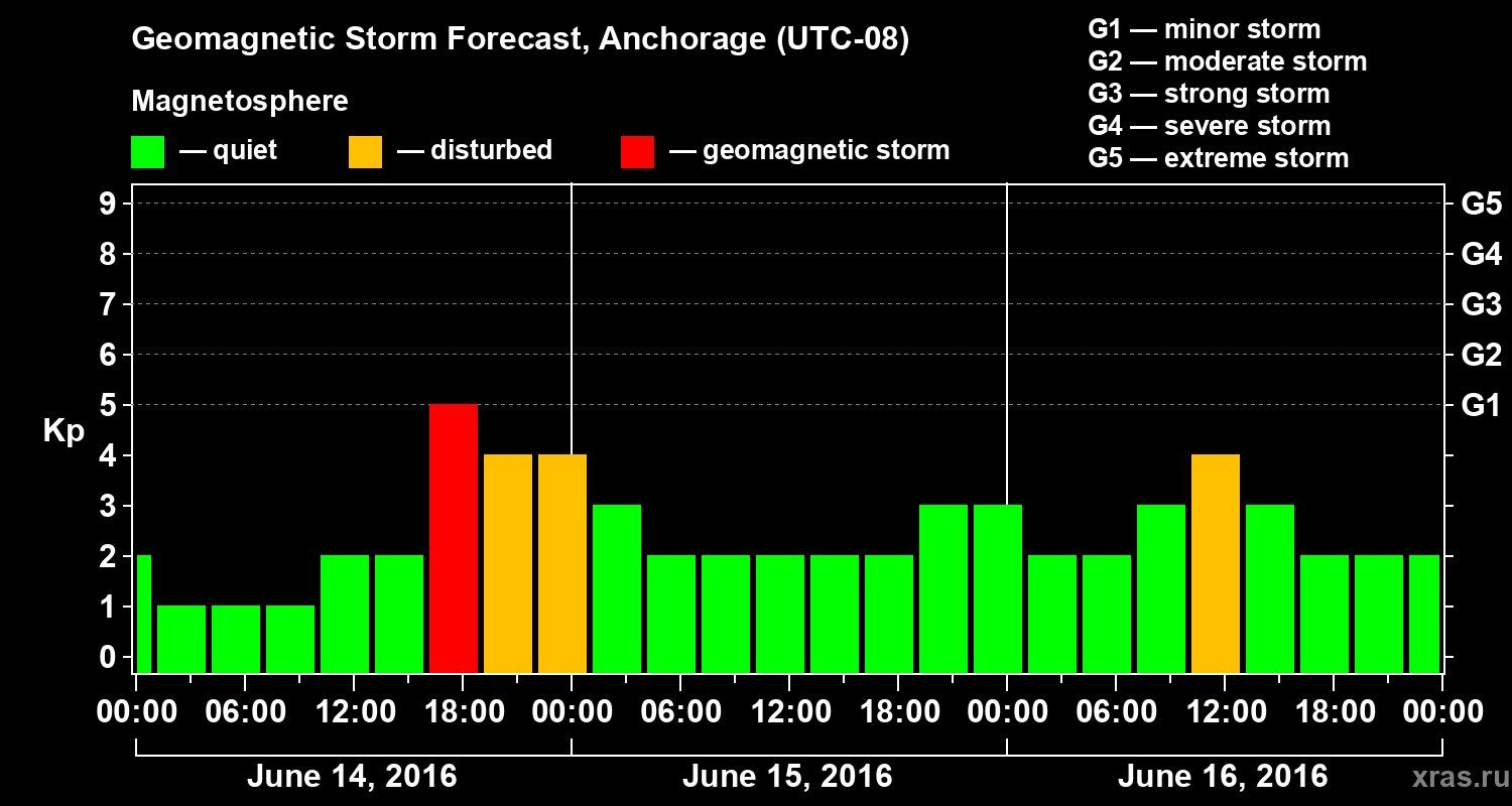Geomagnetic storm forecast in Anchorage for Jun 14, 2016