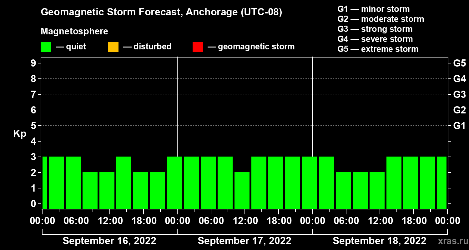 Geomagnetic storm forecast in Anchorage for Sep 16, 2022